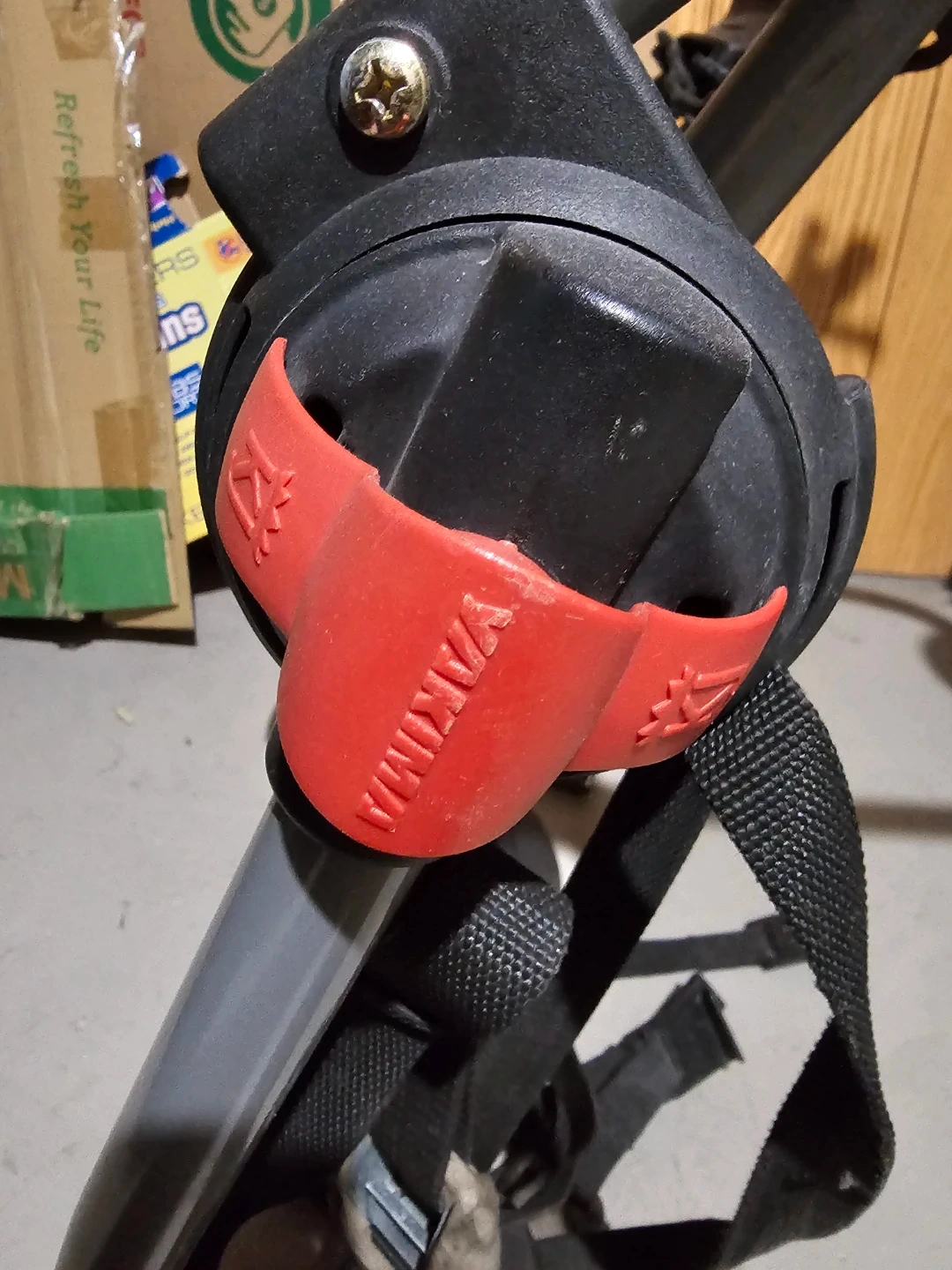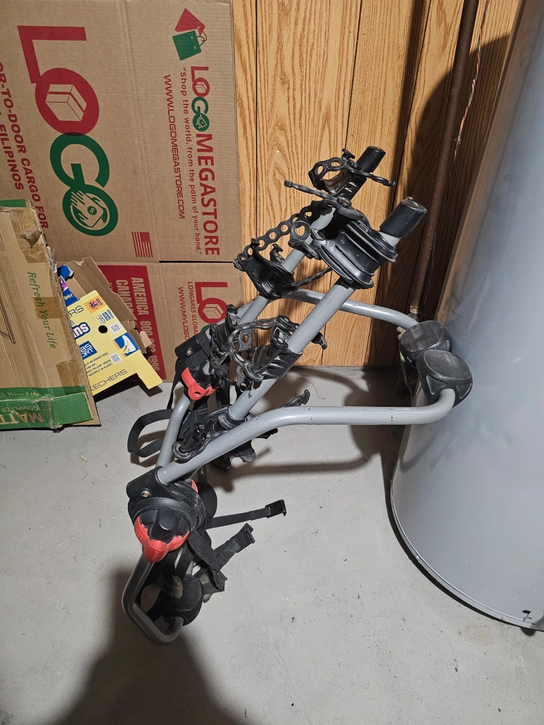 Yakima bike rack for carrying bicycles. It's made of durable metal and plastic components. This rack attaches to vehicles for convenient transport of your 3 bikes.
