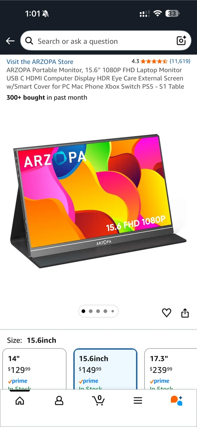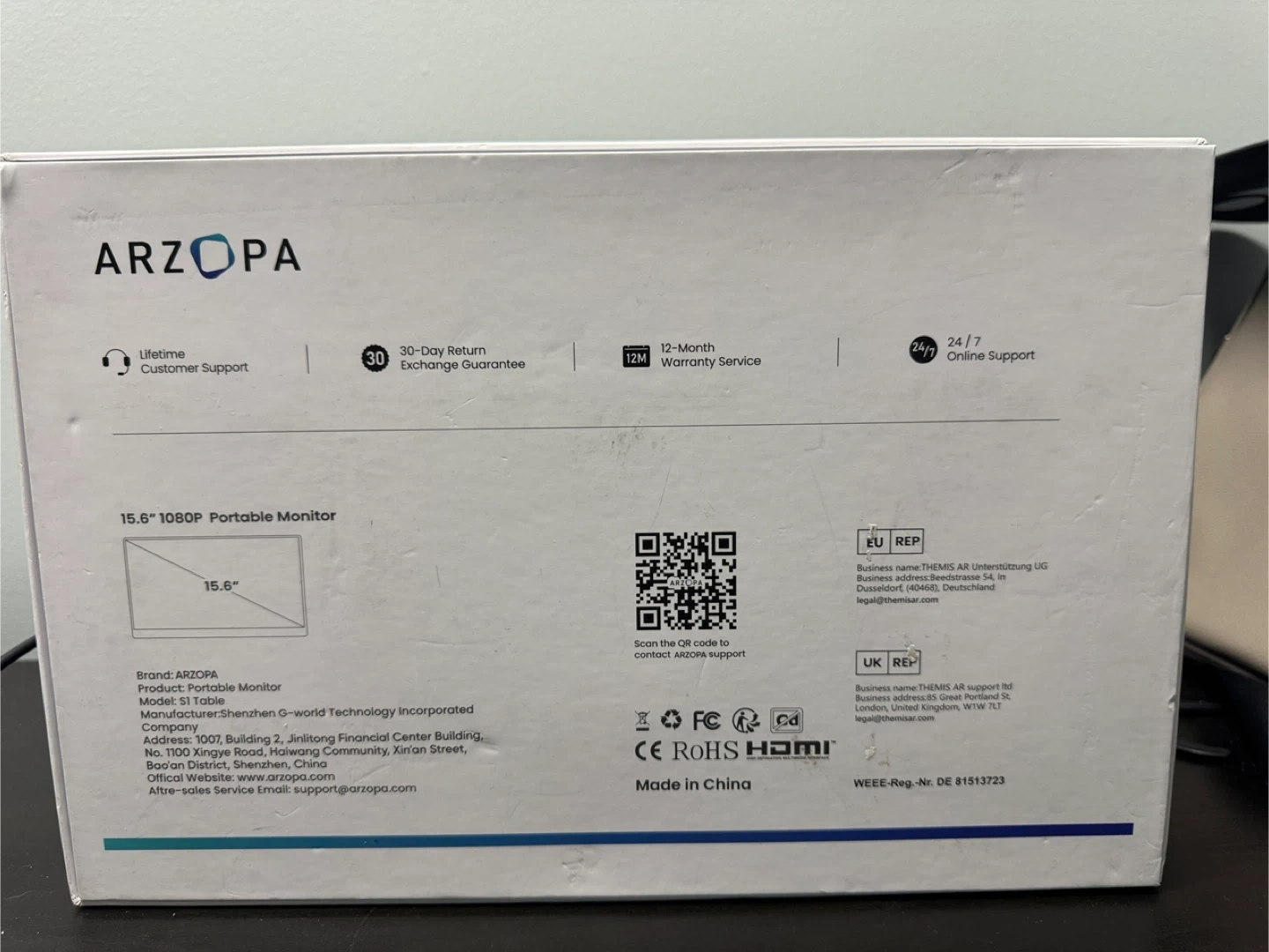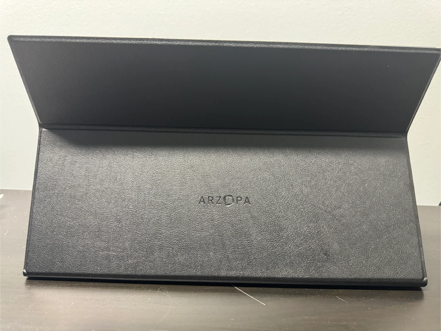 This is an ARZOPA 15.6 inch 1080P portable monitor. It's lightweight and ultra-portable. Includes HDMI and USB-C cables for connectivity.