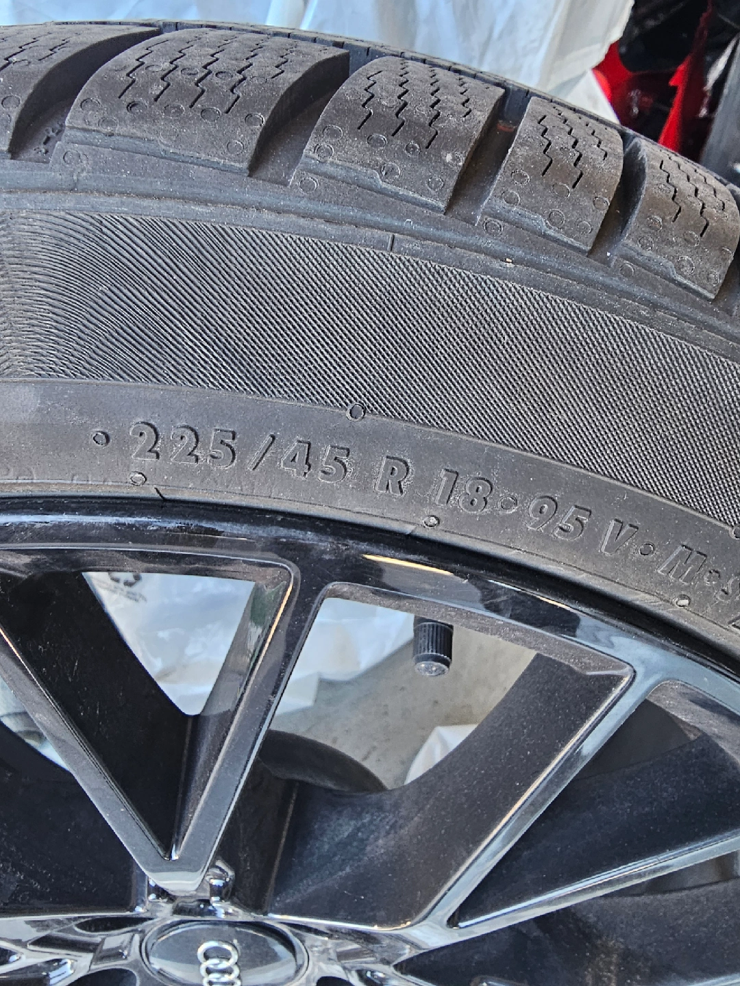 Selling a set of Audi winter tires in size 225/45R18 95V. They are in excellent condition and ready for the winter season! They do clear the larger calipers on an s5 .