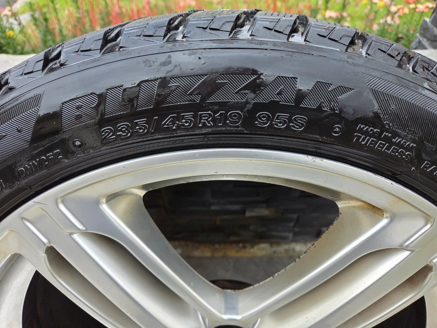 29Selling a set of 4 Audi rims with Bridgestone Blizzak winter tires. The tire size is 235/45R19. They are in good condition and ready for the winter season!