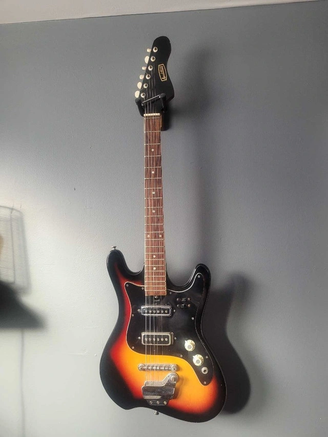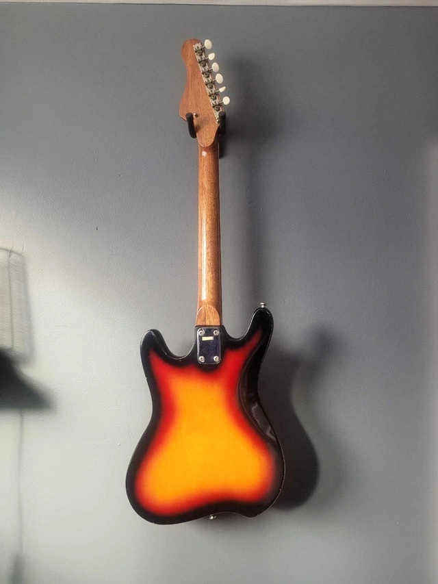 60Looking to part with my vintage Audition electric guitar, made in Japan in the 1960s. These were built by Teisco/Kawai and sold under various brand names back in the day — this one has the classic sunburst finish and tons of retro vibe. Details: Vintage Audition 1960s electric guitar (sunburst finish) Double-cut body style Dual pickups (bridge pickup has been replaced – sounds great!) Original vintage-style tremolo bridge (missing the whammy bar) Scratchy pots (could use some cleaning or contact cleaner) Has that classic vintage Japanese tone — bright, raw, and perfect for surf, garage rock, or lo-fi blues. A great project guitar or a cool player as-is. Condition: Shows normal wear for its age — a few dings and scratches, missing trem arm, and pots could use a cleanup — but otherwise plays nicely and sounds great. Asking $200 or best offer looking for cash only