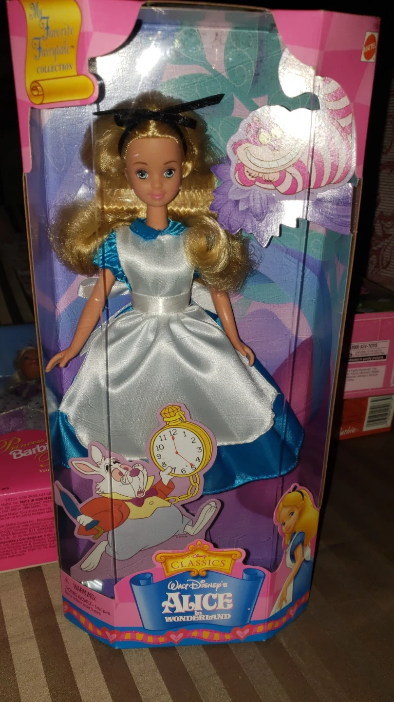 This is a Mattel Barbie doll from the Walt Disney's Alice in Wonderland collection. It's part of the My Favorite Fairytale Collection. The doll is in its original packaging.