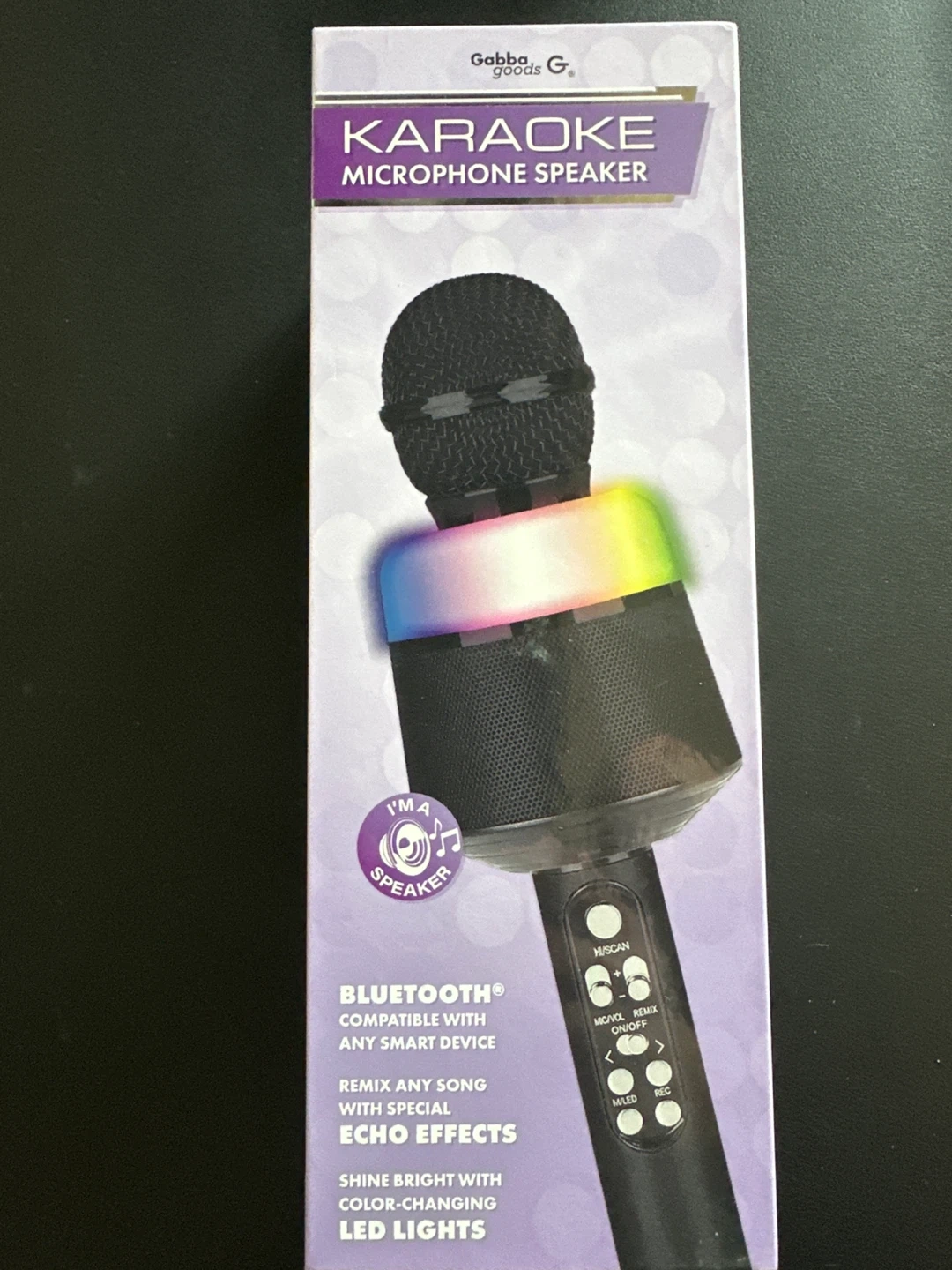 Gabba Goods Karaoke Microphone Speaker with LED Lights