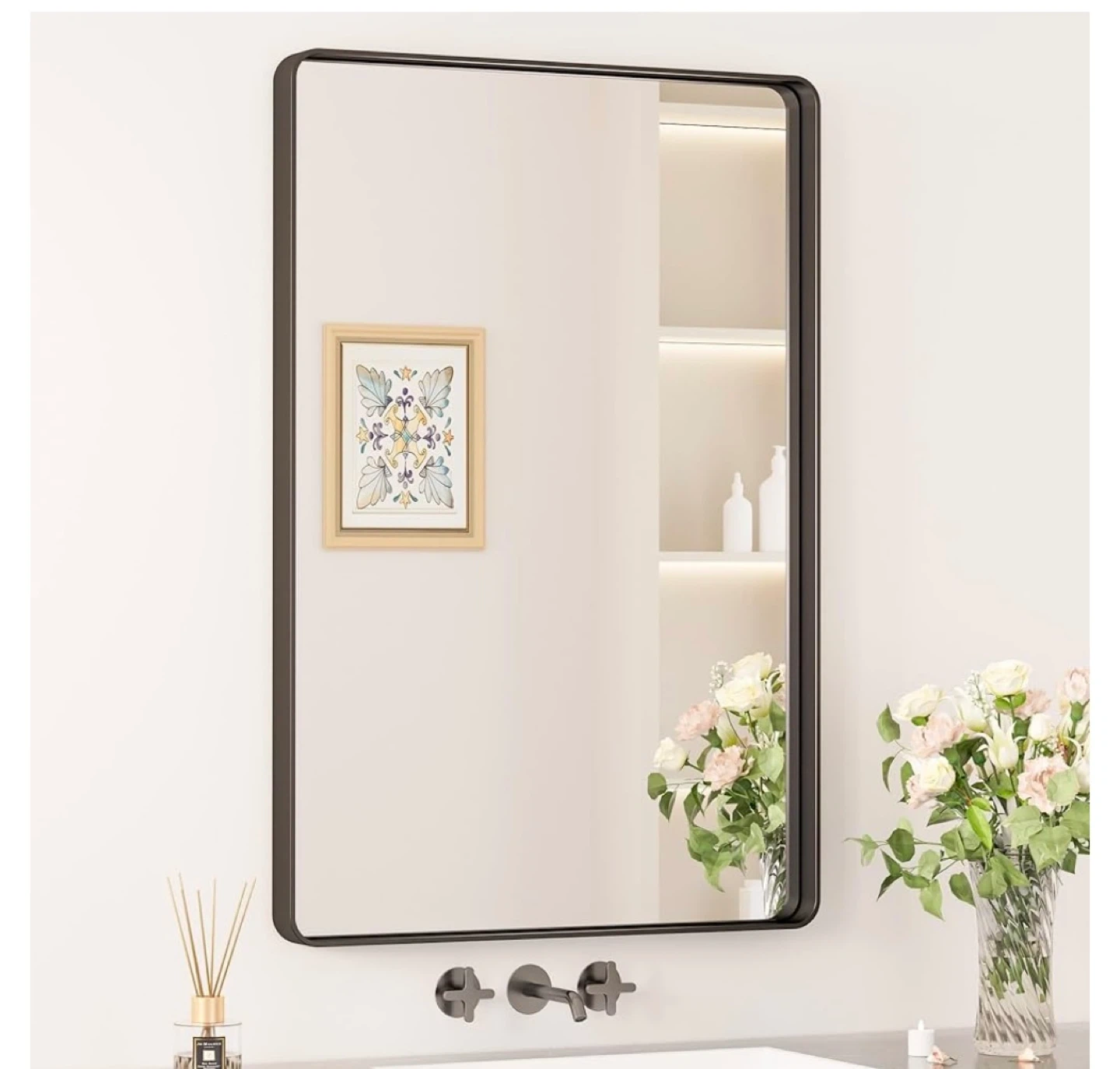 KEONJINN Rectangular Bathroom Mirror - Black Metal Frame