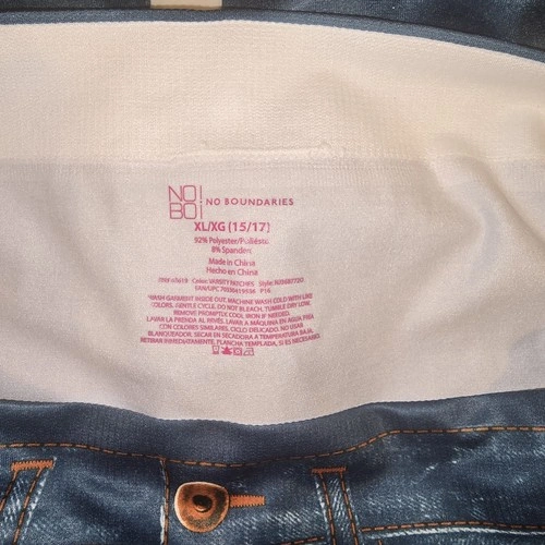 The No Boundaries NOBO Leggings Bottoms Pants in size XL offer a comfortable and stretchy fit for women. These ankle-length leggings in blue feature a travel jeans pattern and are made in China. Perfect for everyday wear, these leggings are a versatile addition to any wardrobe.