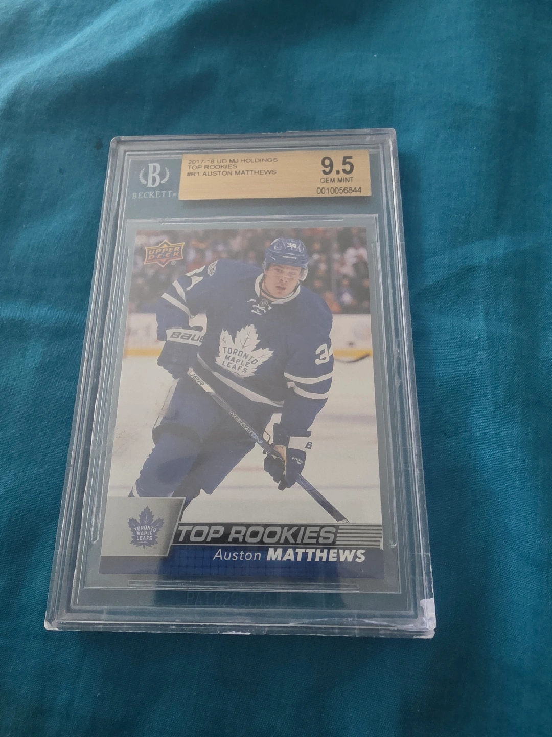 Selling an Auston Matthews Top Rookies hockey card, graded 9.5 Gem Mint by Beckett Grading Services (BGS)! The card is from the 2017-18 UD MJ Holdings series. A great addition to any Toronto Maple Leafs or hockey card collection
