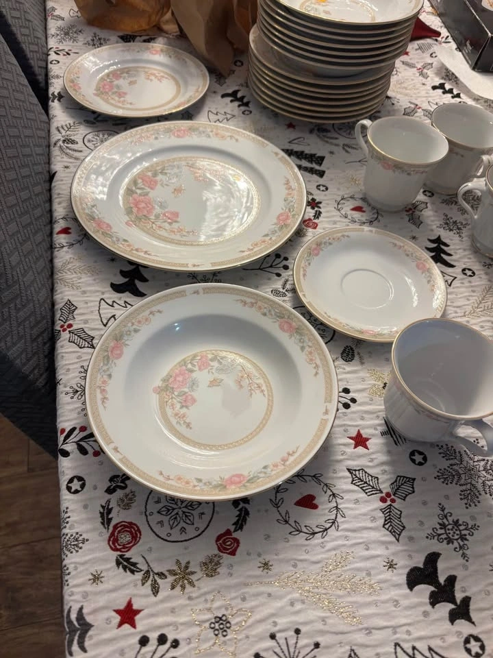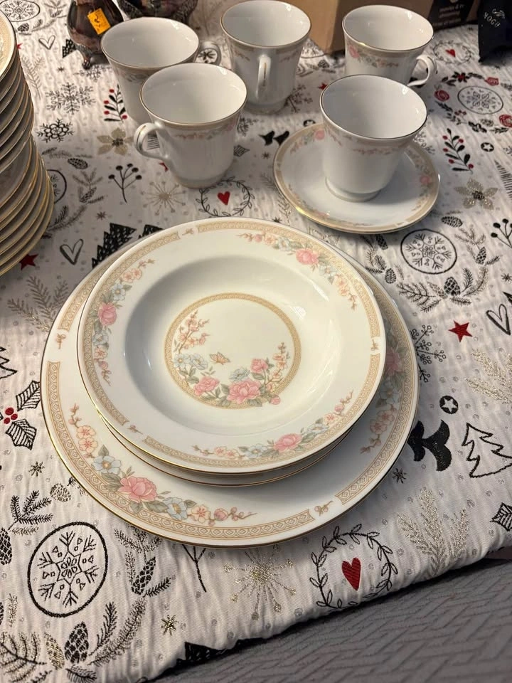 Excellent condition, never been used 8 place settings of Fairfield Symphony fine china. Mint condition, no chips, cracks or crazing. Includes 8 dinner plates, 8 rimmed soup bowls, 8 tea cups, 8 saucers, and 8 salad plates. Price firm! Pick up in Keswick.