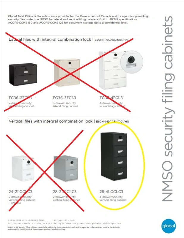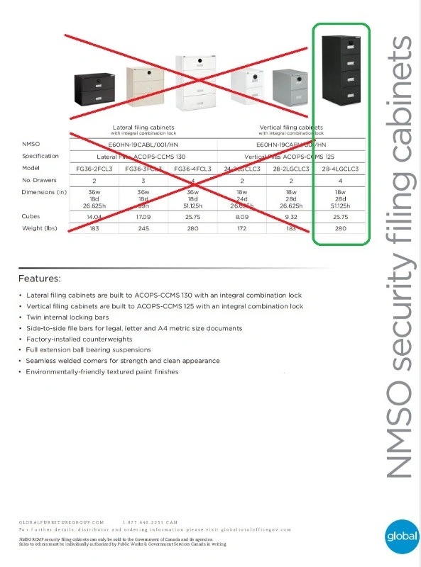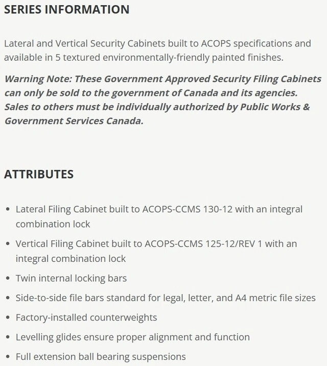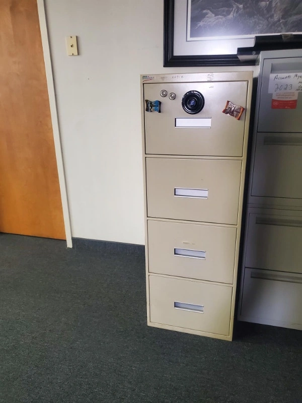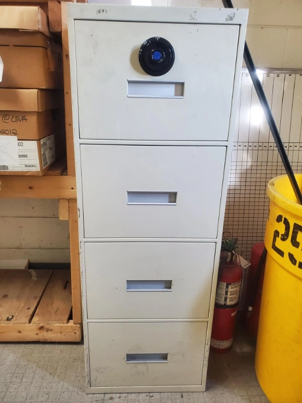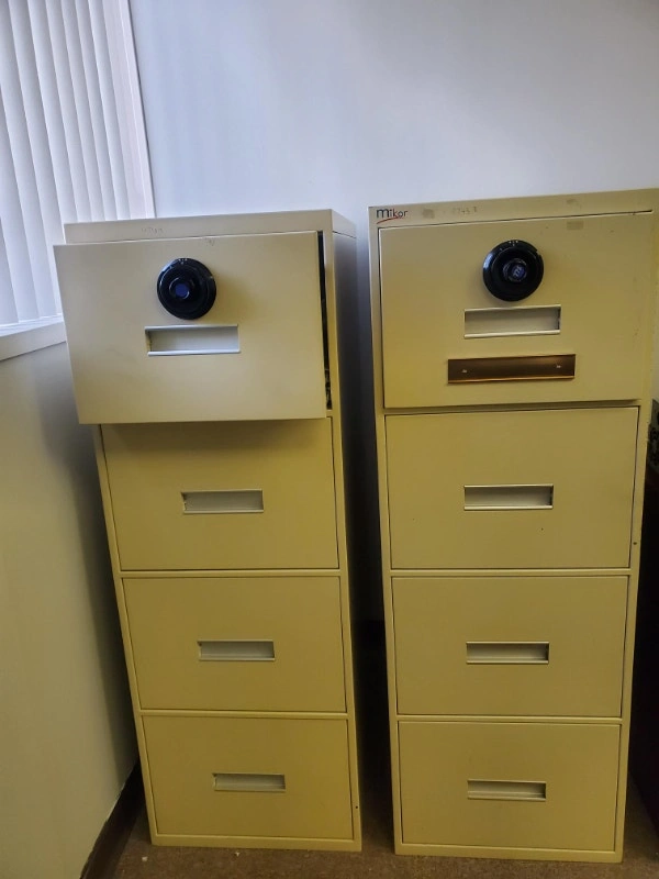 Heavy duty 4-drawer vertical security file cabinets with combination locks. No keys needed. Built to ACOPS specs. These are special security cabinets, normally sold direct to the Government of Canada and its agencies. Adjustable drawers. Four cabinets available. Pick-up only, Monday-Thursday, 8 am - 2:30 pm. $300 per cabinet.