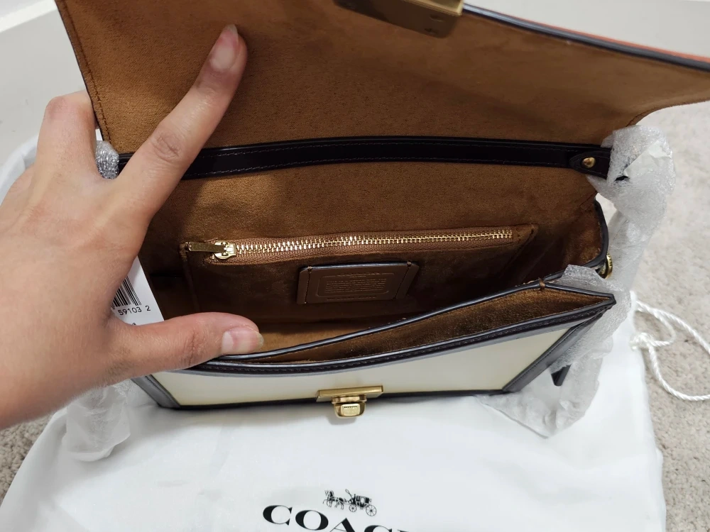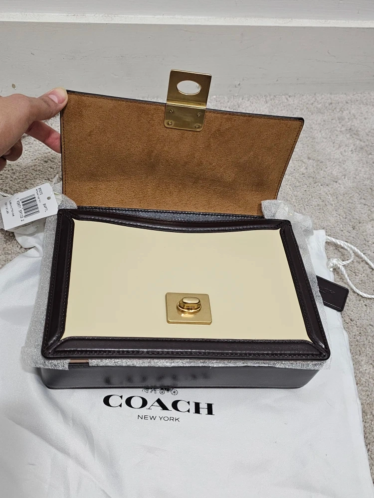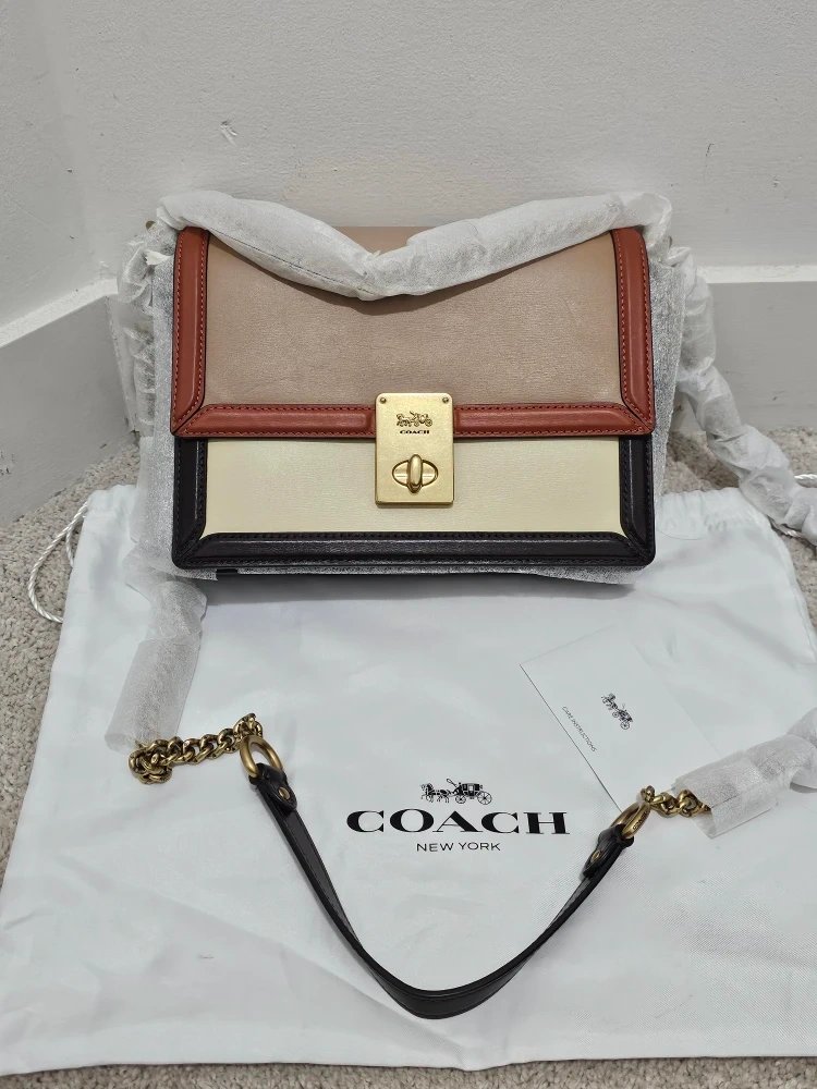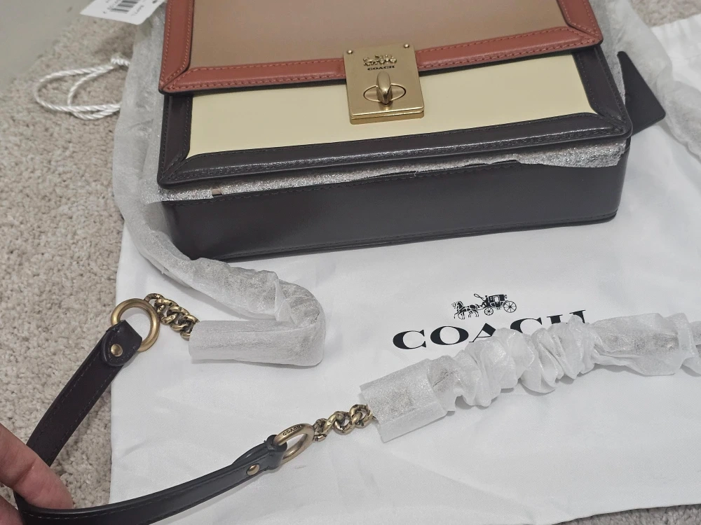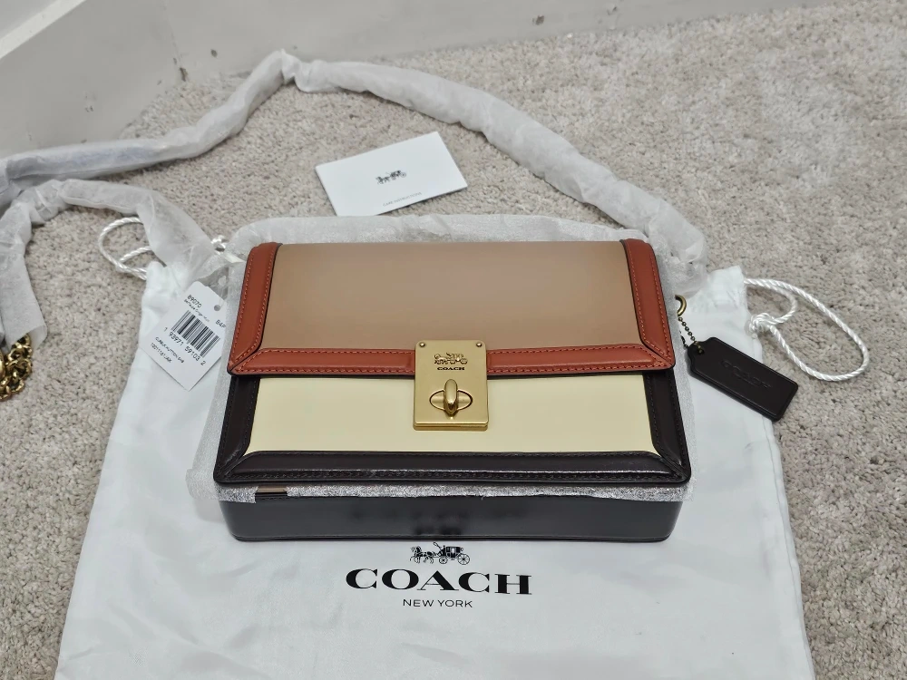 434This is a brand new Coach handbag in a beautiful colourblock design. It comes with its original dust bag and all the original packaging. The handbag features a combination of beige, brown, and cream colours. It's a stylish and versatile accessory! PRICE REDUCED AND FIRM