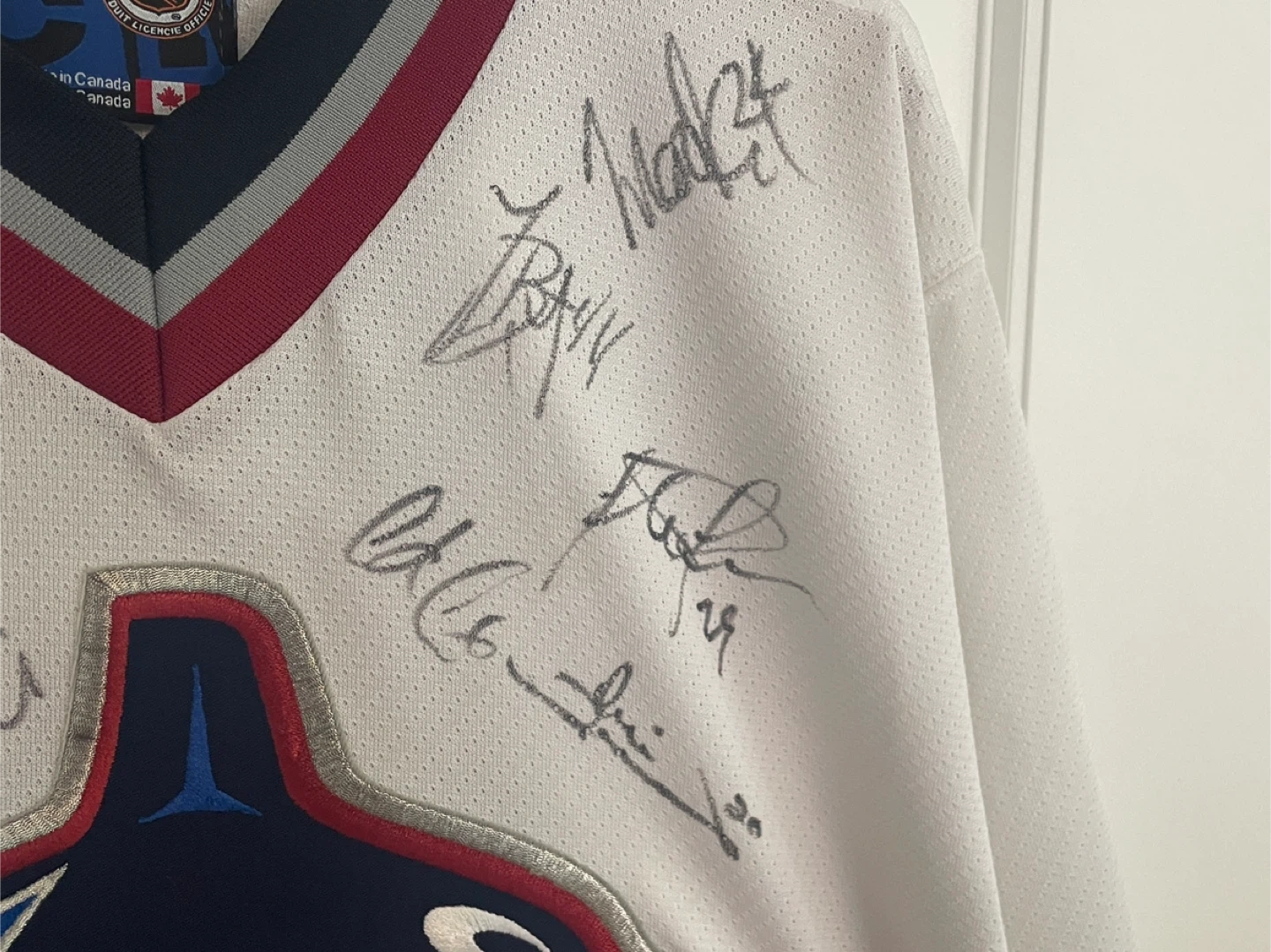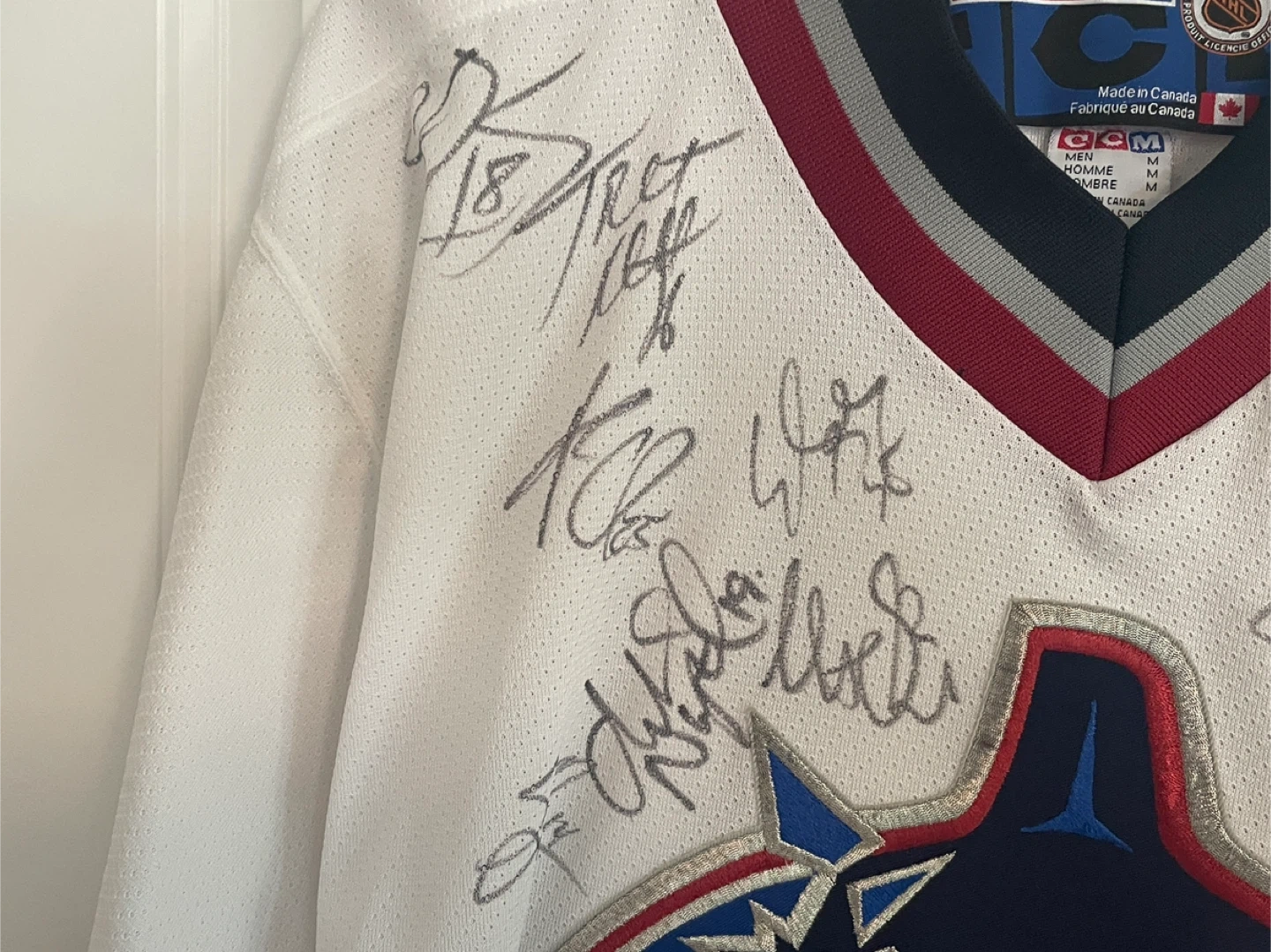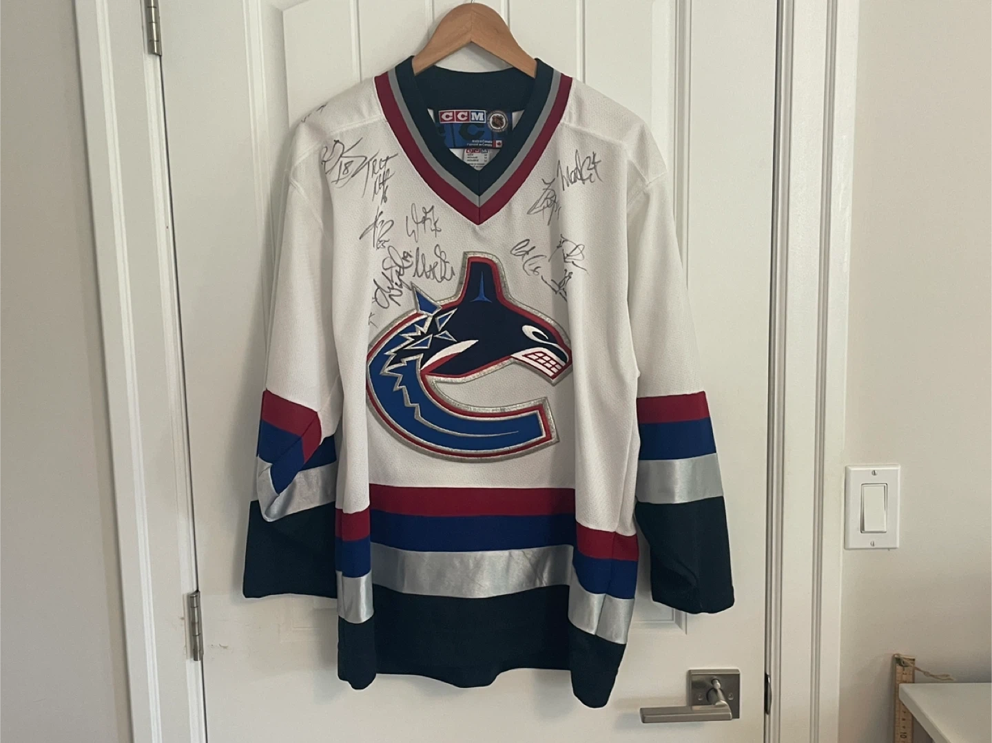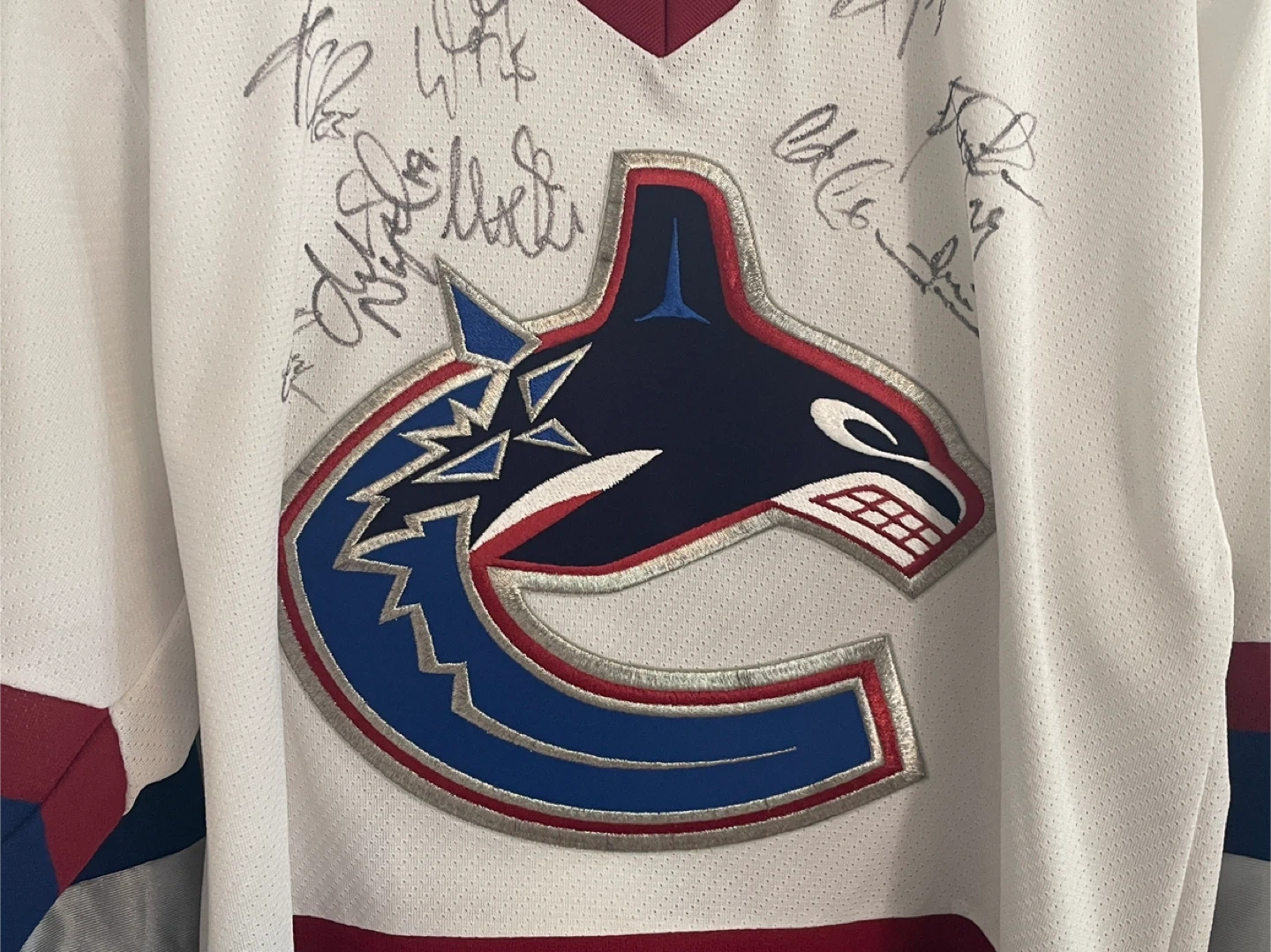 105Signed by most of the players of the 2001 roster Murray Baron Todd Bertuzzi Andrew Cassels Marcus Naslund Jason Strudwick Adrian Aucoin Josh Holden Ed Jovanovski Alexander Mogilny Chris Joseph Bill Muckalt Kevin Weekes Garth Snow Greg Hawgood Peter Schaefer Dave Scatchard Donald Brashear Darby Hendrickson Steve Kariya Pick up in Coquitlam or Metrotown. Thanks.