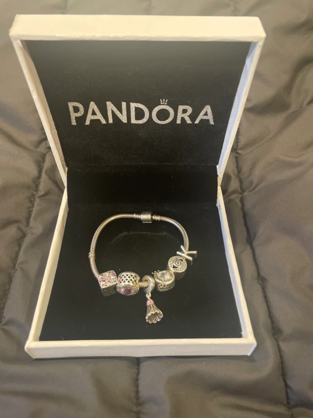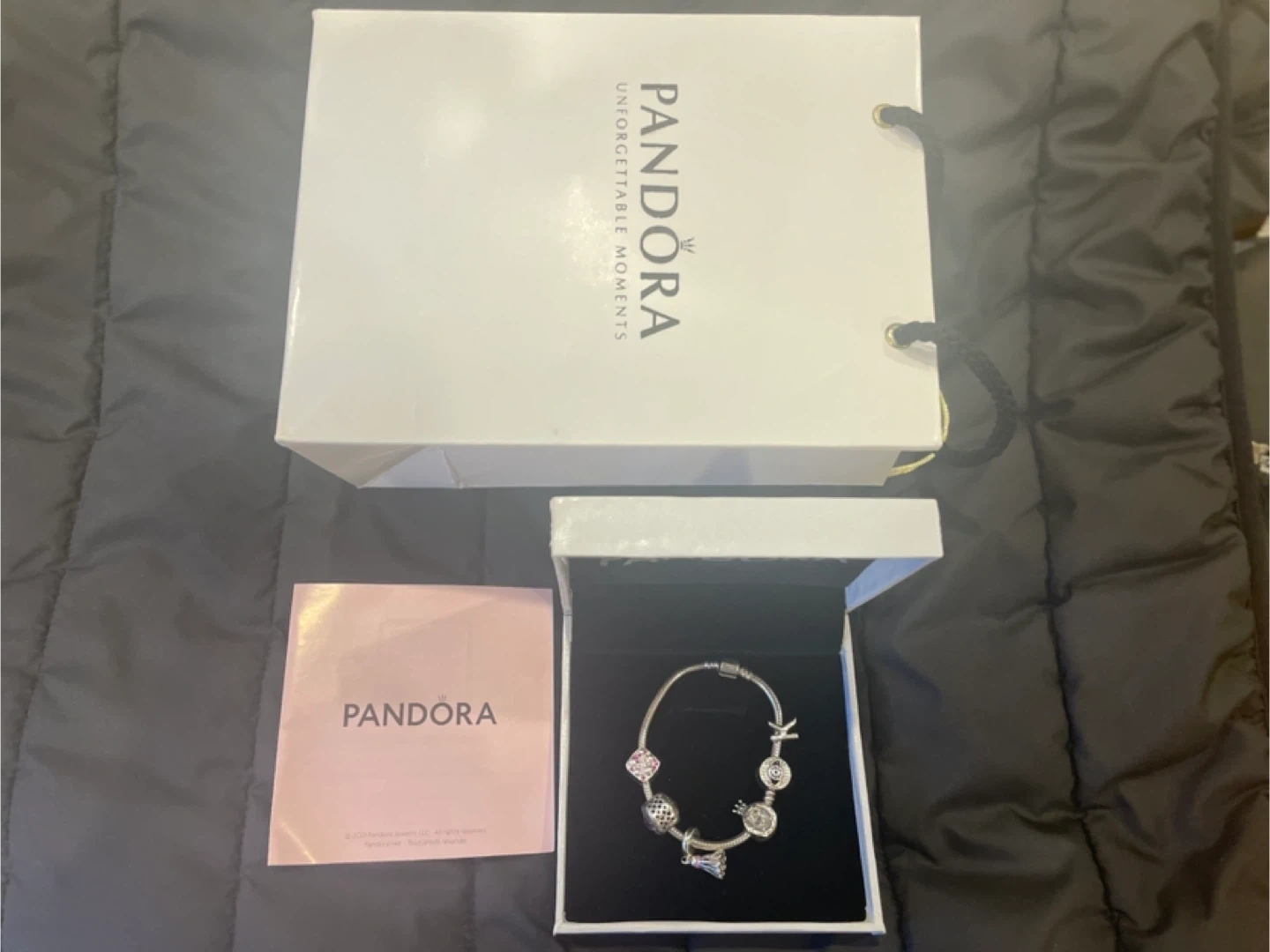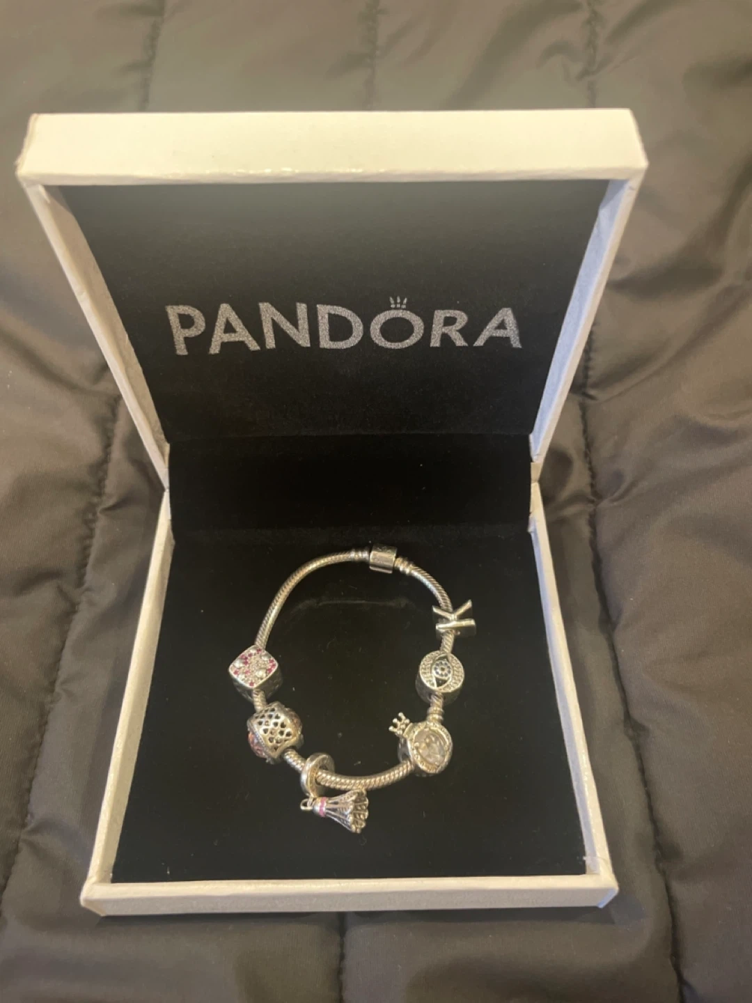 5Selling a lovely Pandora bracelet with 6 charms! It comes with the original box and packaging. Perfect for adding some sparkle to your everyday look or as a gift for someone special.