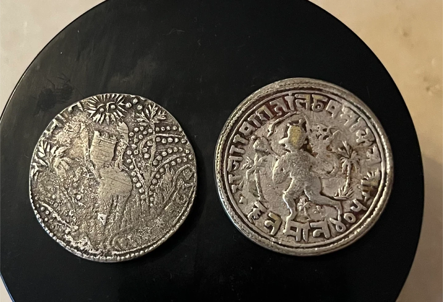 25045 dollars each silver 1804 India ๐ฎ๐ณ Ram DARBAR Mumbai Here are a couple of antique silver coins. They have intricate designs and details. If you are a coin collector, these may be of interest!