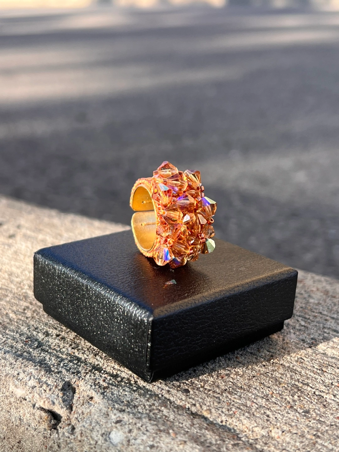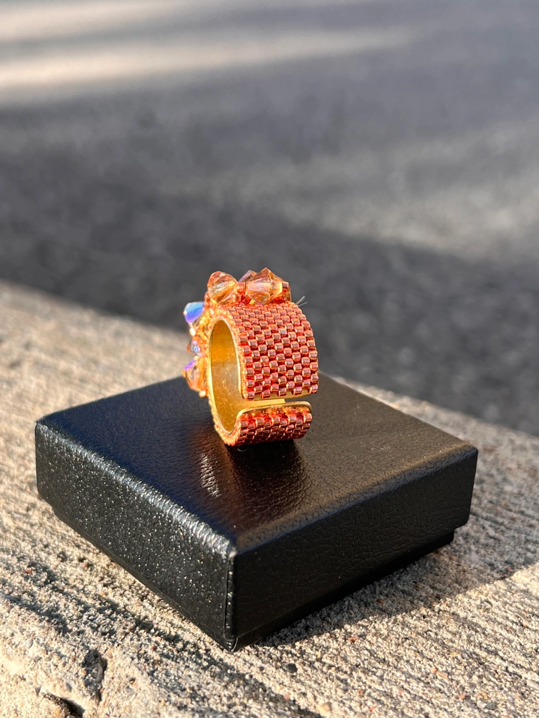 This stunning ring is handcrafted with authentic Swarovski crystals and premium Japanese Miyuki beads. ✨ ✅ Unique handmade design ✅ Elegant gold-tone base ✅ Perfect for special occasions or everyday sparkle