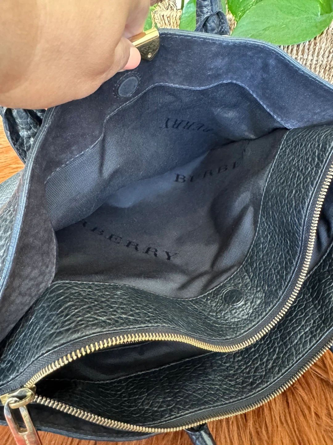 Selling a stylish vintage authentic Burberry handbag in black leather! It's in good condition and has a zipper closure. Perfect for everyday use or a night out. Feel free to ask any questions! It’s great as a laptop bag