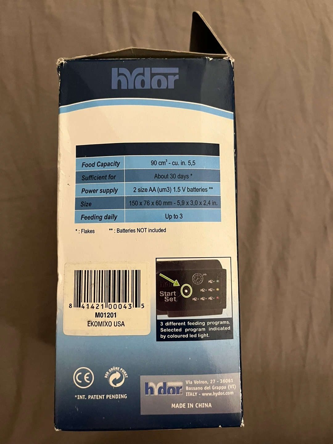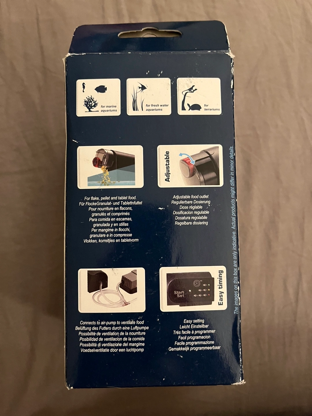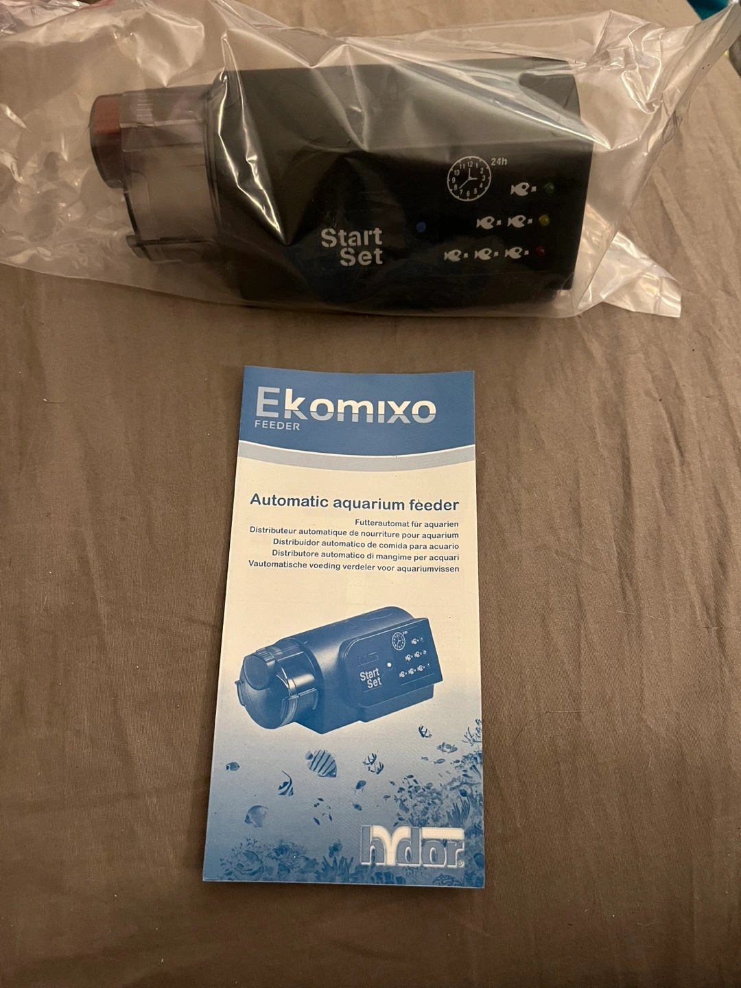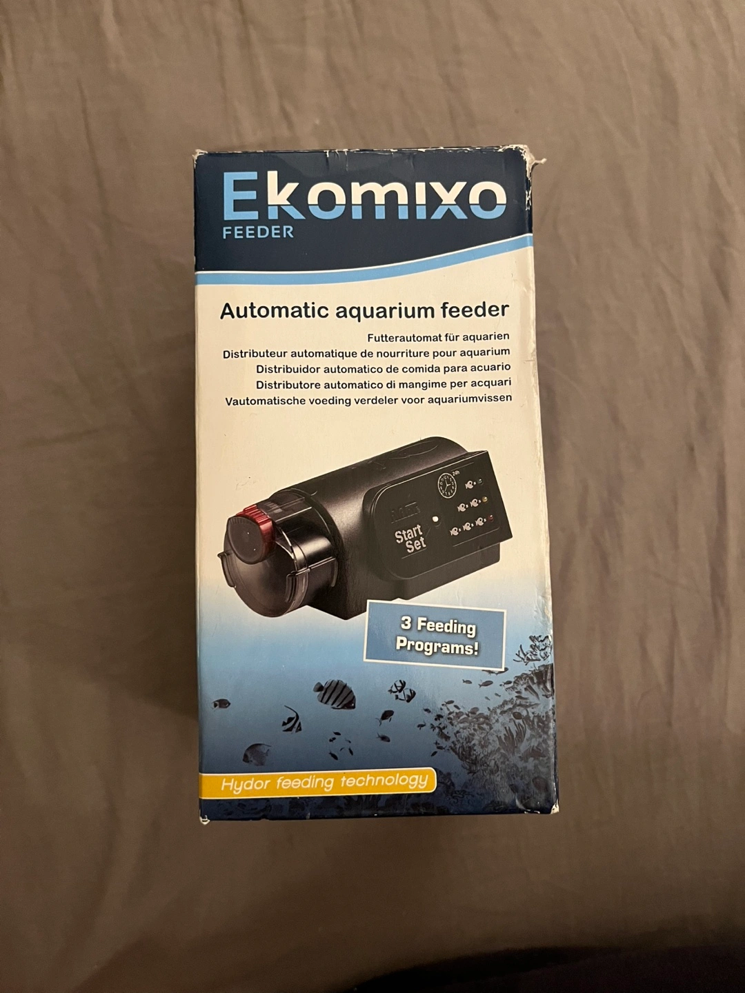 Battery operated (2 AA) automatic fish feeder. 3 feeding programs. Easy to program. Includes manual & brand new inbox.
