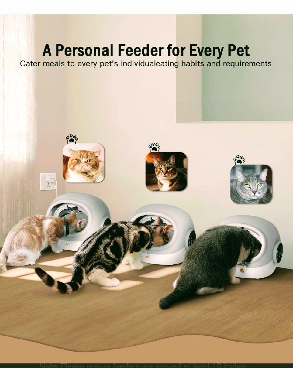 12Iesotc Automatic Cat Feeder, RFID Microchip Pet Feeder, Auto Cat Food Dispenser with Collar Sensor, Timed Auto Pet Feeder for Multi-Cat Households, Suitable for Wet and Dry Food. 4 Feeding Modes.