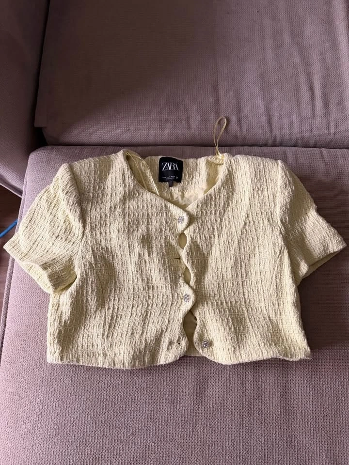 Buy & SellZara Preppy Yellow Short Sleeve BlazerZara Preppy Yellow Short Sleeve Blazer$25LOVE this top, but doesn’t fit anymore. Very cute, gives a prep school mean girls wardrobe type vibe. Size small. Bought at Zara.WHERE TO MEETDowntownView MapSELLERverifiedJadeDowntown Toronto731 review0 chats·0 favorites·6 viewsSEND CHAT TO SELLERHi Jade! I’m interested in your listing.Hi Jade! I’m interested in your listing.Get the Karrot app to chatSign In to chat