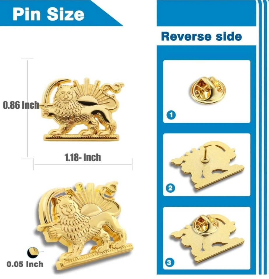 Both flag and lion and sun designs are available, $5 each. Made of alloy with a durable, hand-filled enamel finish. Size: 3x2.17cm. These portable and exquisite pins are perfect for adding a stylish touch to jewelry, clothes, bags, hats, and more.
