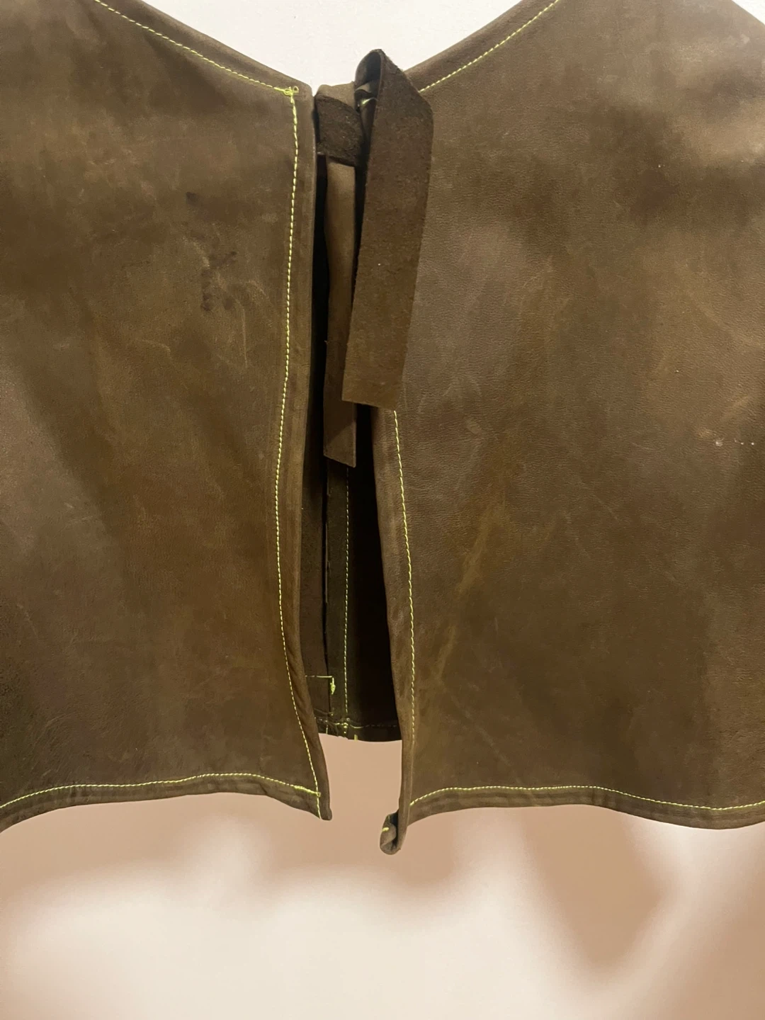 This is a custom design by me Super, soft leather with lime green stitching at the top sits just under boob style size small