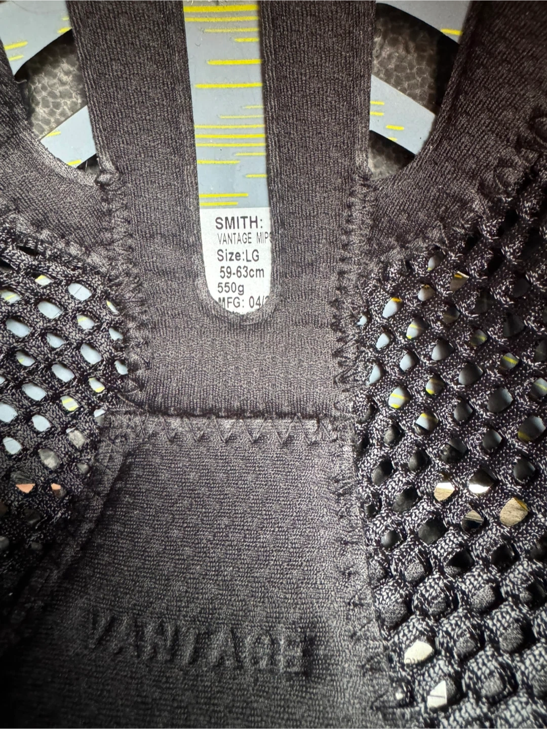 This black Smith Vantage MIPS ski helmet is a size LG. It weighs 550g.