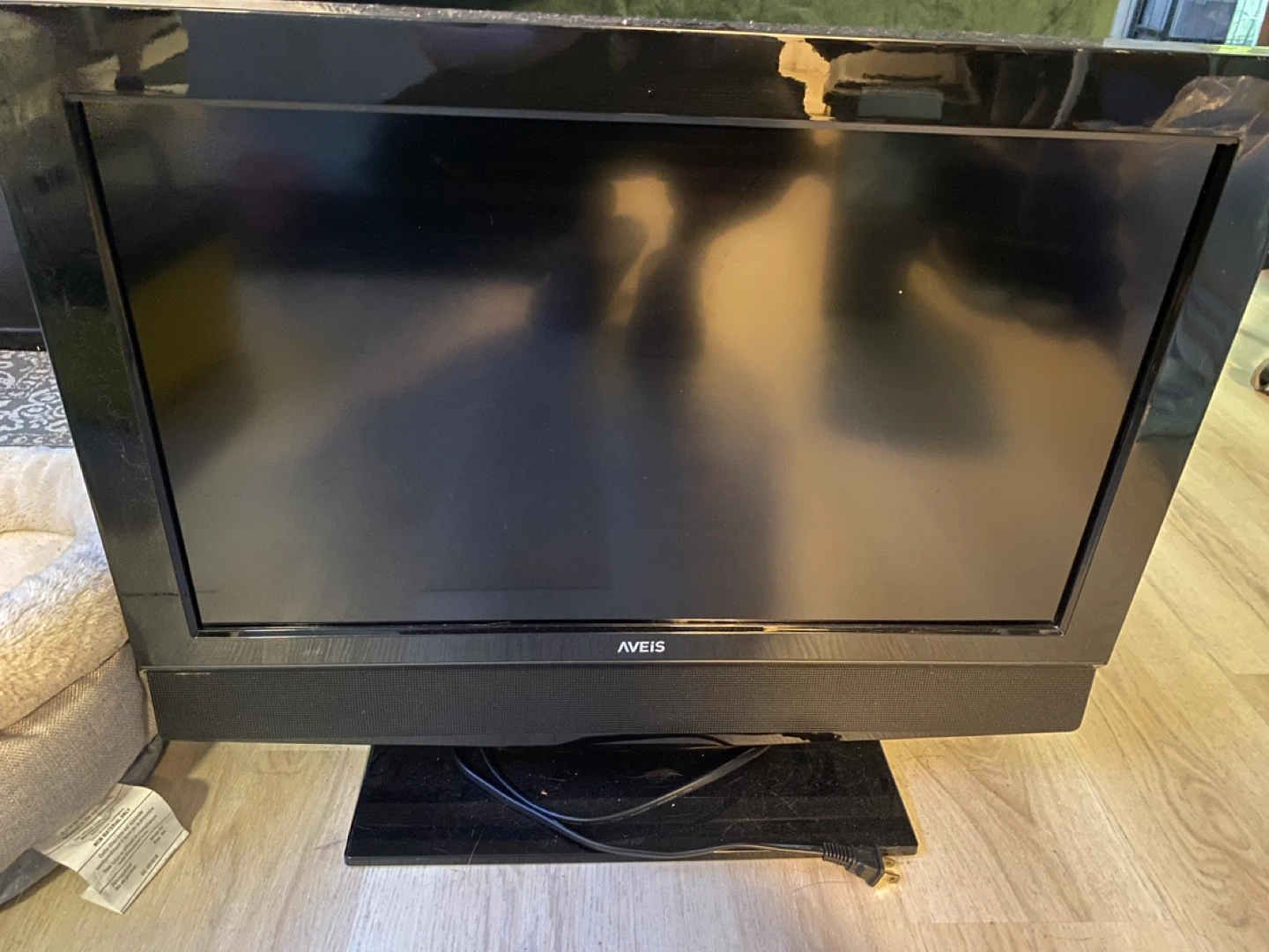 Selling an Aveis TV. It's in okay condition. Measures 26x21 inches in space. Screen is 22.5x13 inches. No remote and the power button takes a few seconds to turn on and off
