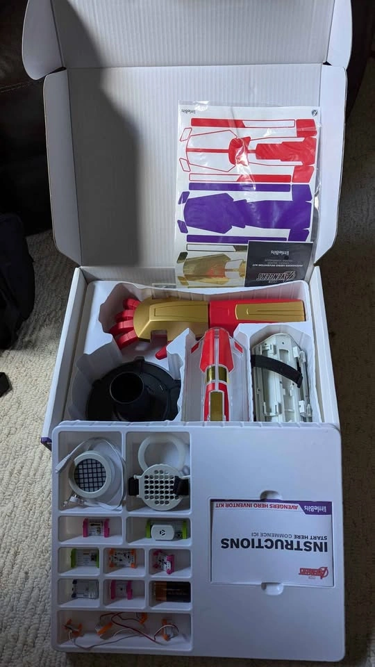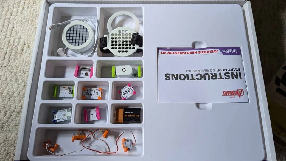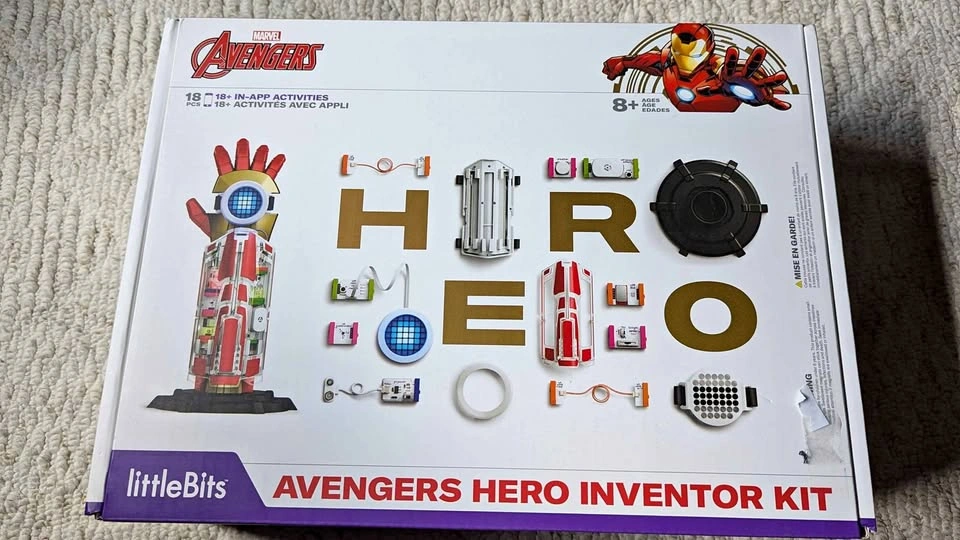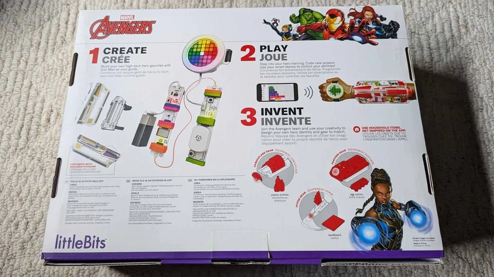 With their favorite Marvel Avengers, kids become their own Super Heroes by building and customizing their high-tech hero gear and unique identity. Comes with 9 Bits, 7 hero gear parts, 2 sticker sheets, and the free littleBits Avengers Hero Inventor app Free Avengers Hero Inventor app includes step-by-step instructions and video tutorials that guide kids through creating, customizing, and coding their unique hero identity and gear. Their favorite Marvel Avengers, like Iron Man and Iron Heart, Black Panther and Shuri, Ant-Man and the Wasp, and more! Guide them through their hero training. App includes challenges to promote creativity and customization using household items. Kids use their smart device to control new abilities, with 18+ in-app activities and coding that keep kids playing day after day Comes with wearable tech sensors, customizable LED matrix light design, authentic Marvel Avengers sound effects, and in-app block coding littleBits electronic blocks & hero gear parts can be reconfigured in different ways to create brand-new inventions