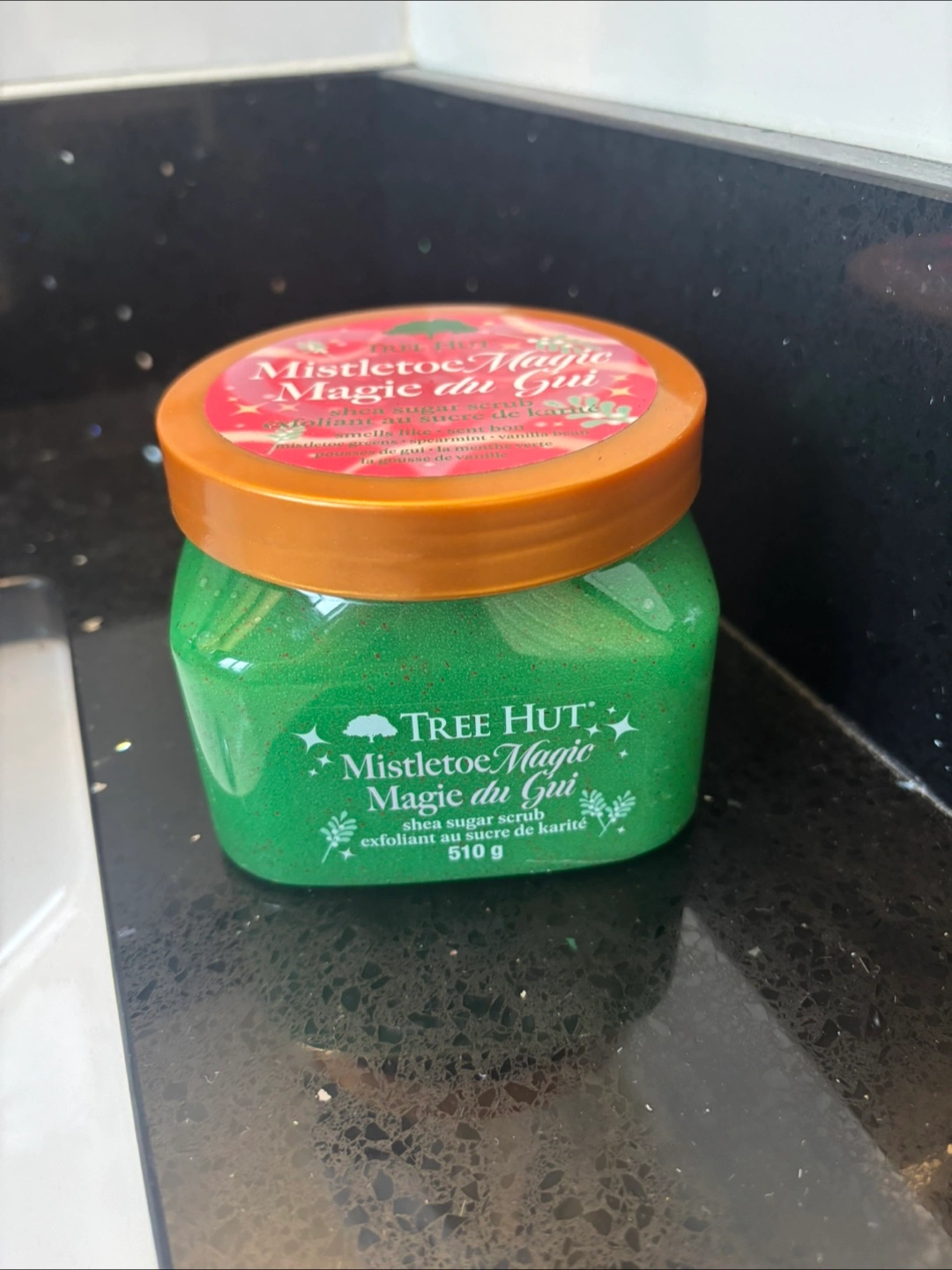 This Mistletoe Magic Shea Sugar Scrub from Tree Hut is a festive holiday body scrub. It's a shea sugar scrub exfoliant that smells like mistletoe, spearmint, and vanilla bean. 510g jar.