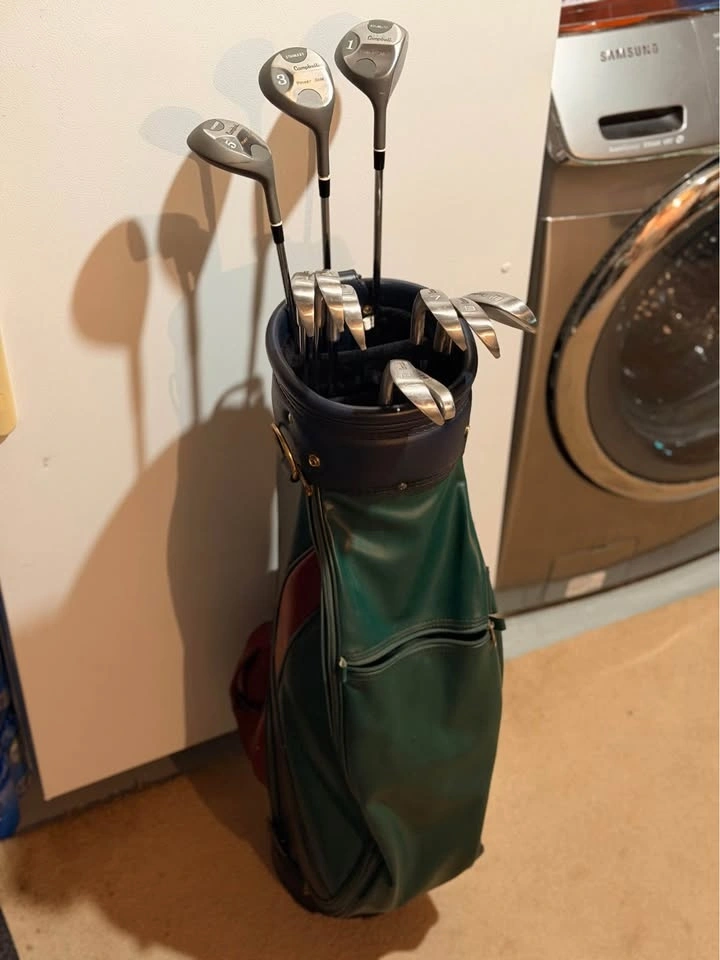 Clubs are an older Campbell set but are in almost new condition. Faces, shafts, and grips are all in great shape with minimal wear. No rust and very well kept.
