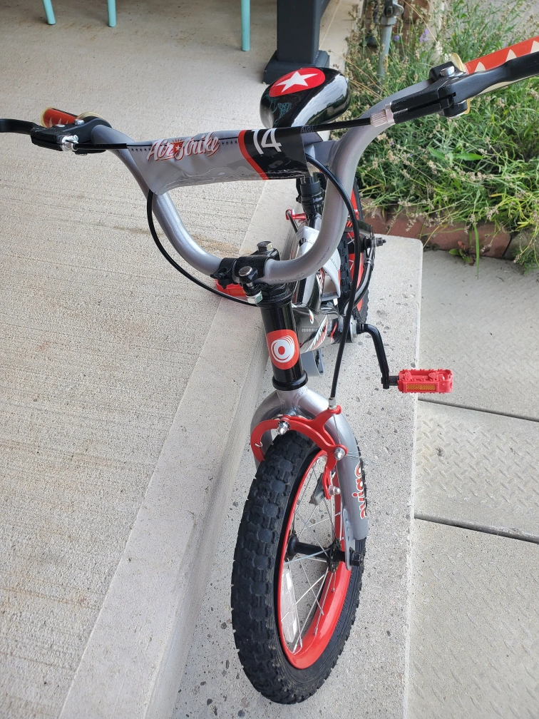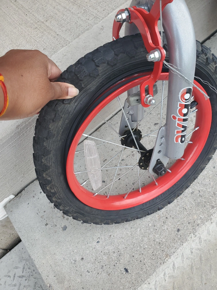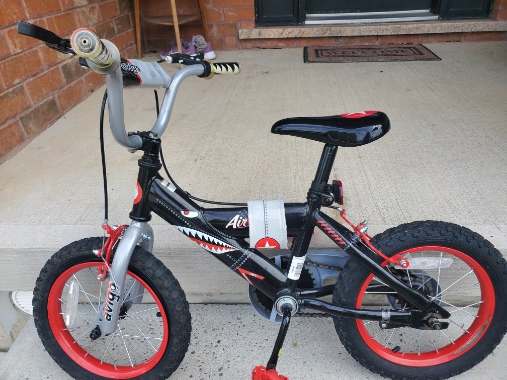 Selling an Avigo Air Strike 14" kids bike! It features a cool design and is perfect for young riders learning to balance. Training wheels are included!. tube needs to be fixed for front Tyre.