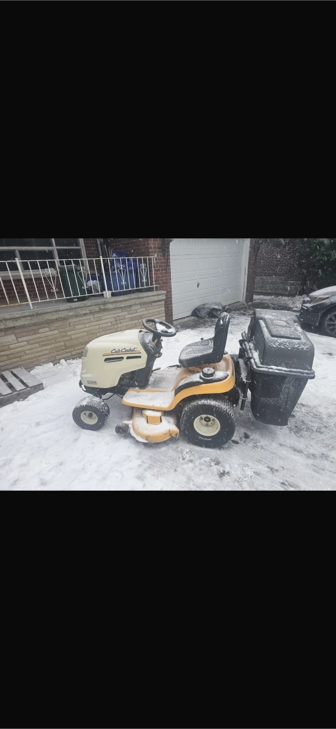 Selling a Cub Cadet riding lawn mower. It appears to be in good condition and comes with a grass catcher attachment. Perfect for keeping your lawn tidy!