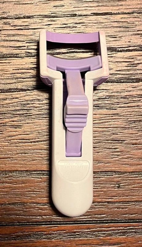 Eyelash curler for sale. Avon brand. Mauve purple and white color. Plastic with rubbery lip to be gentle on eyelashes. Vintage late 90s. Great addition to your makeup bag. $5. Near the Burlington/Oakville border.