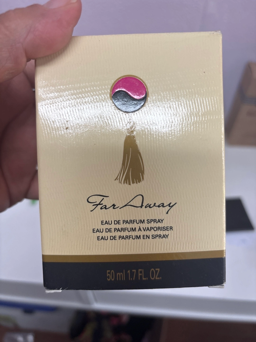 Selling a bottle of Avon Far Away Eau de Parfum. It contains 50ml / 1.7 FL. OZ. The box is included