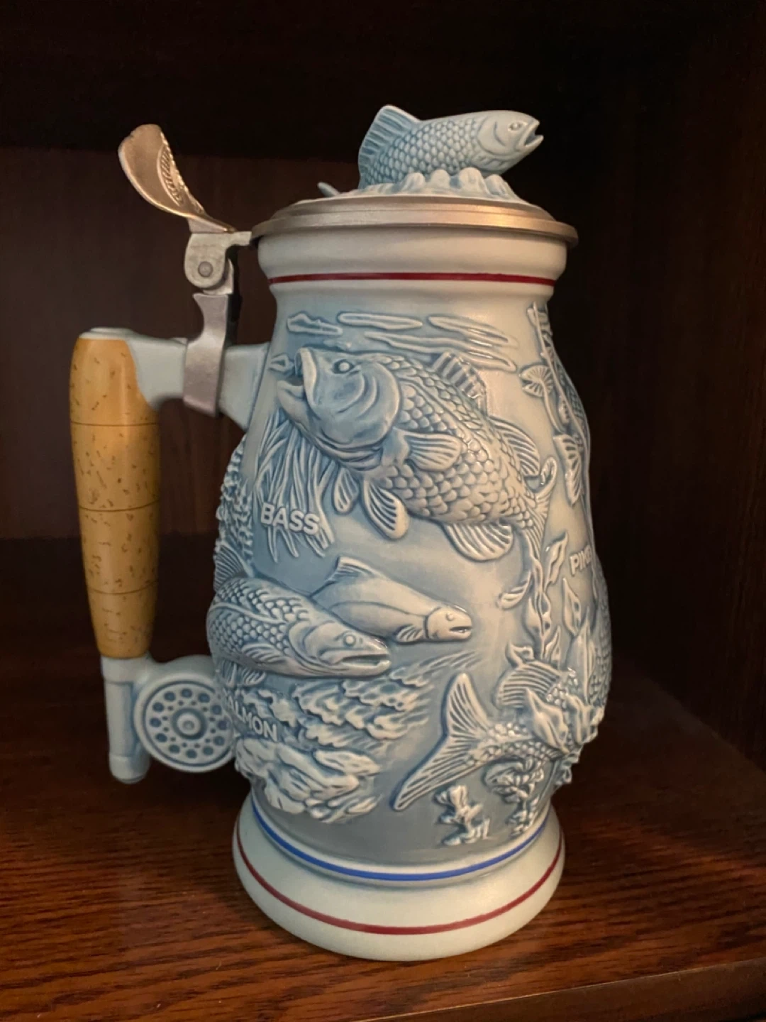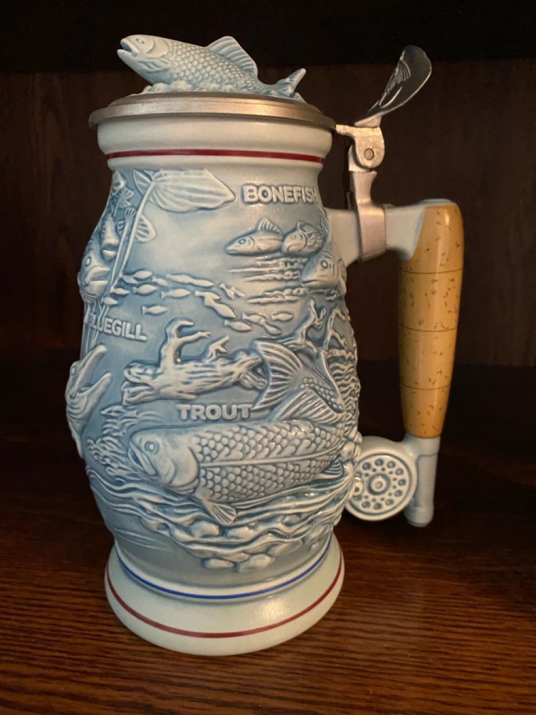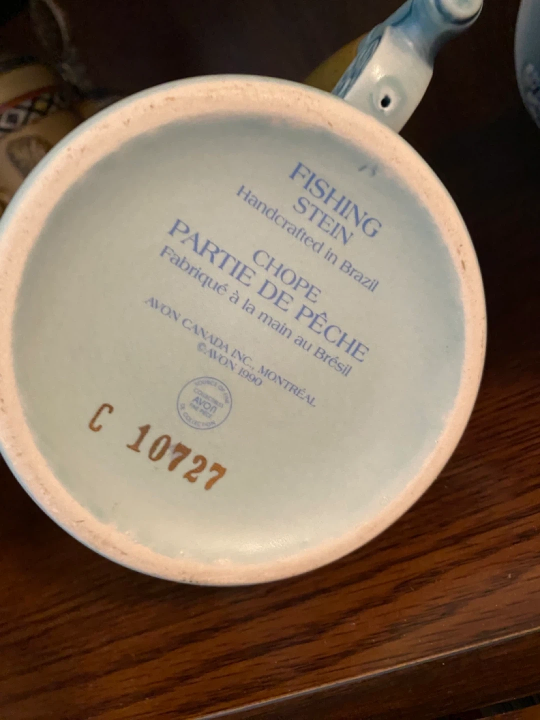 10Selling a unique Avon Fishing Stein! It's handcrafted in Brazil and features a detailed design with various types of fish. A great piece for collectors or anyone who appreciates unique drinkware