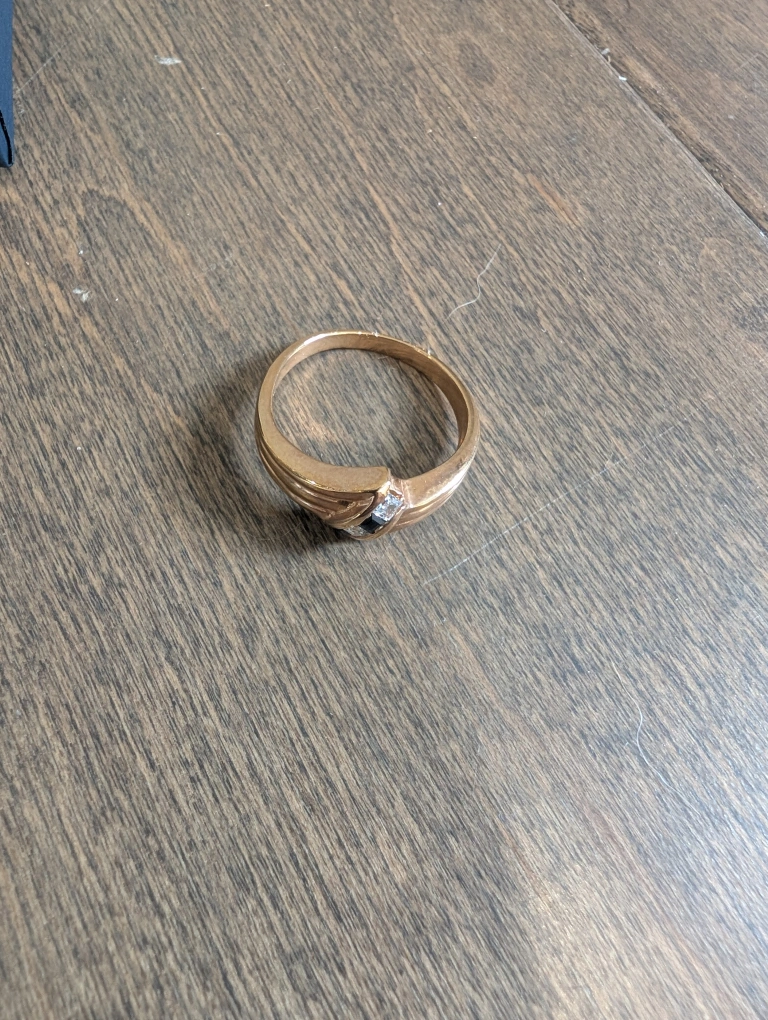 Brand new brass metal natural blue sapphire ring for sale. Two channel set square cut natural blue sapphires 0.10 carats with cubic zirconiums 0.16 carats. Ring size 6, September birthstone. Retail value $300, selling for $75 FIRM. Comes with appraisal.
