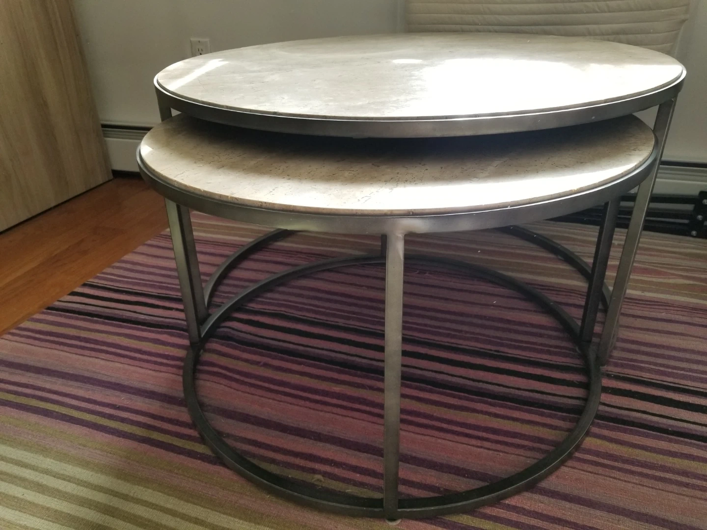 Stone Round Nesting Coffee Table w/ Side Table