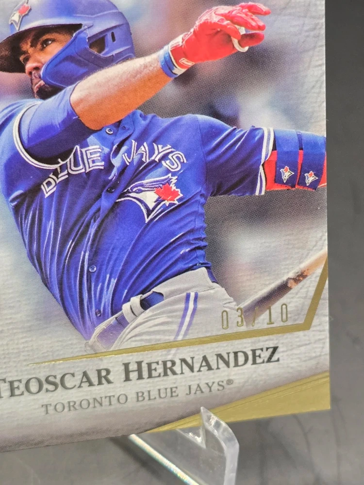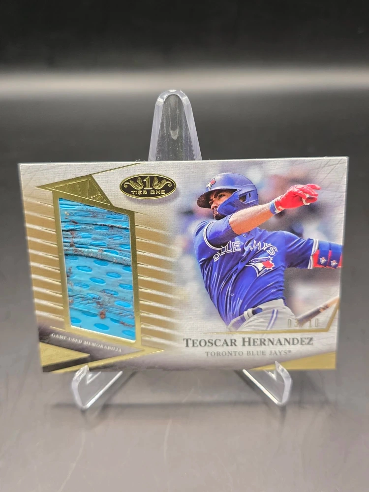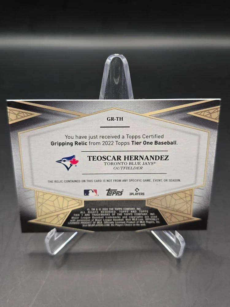Selling a Teoscar Hernandez Toronto Blue Jays Gripping Relic baseball card from the 2022 Topps Tier One Baseball series! It's a certified Topps card.