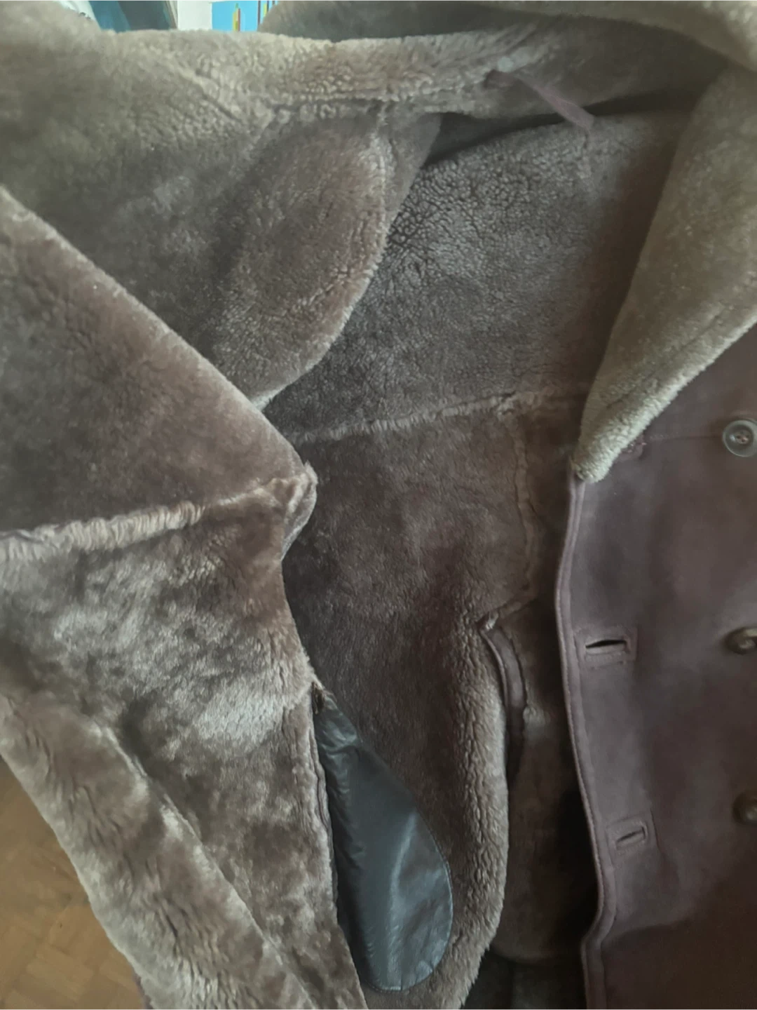 100A cozy shearling coat, perfect for the Canadian winter! It's in great condition.