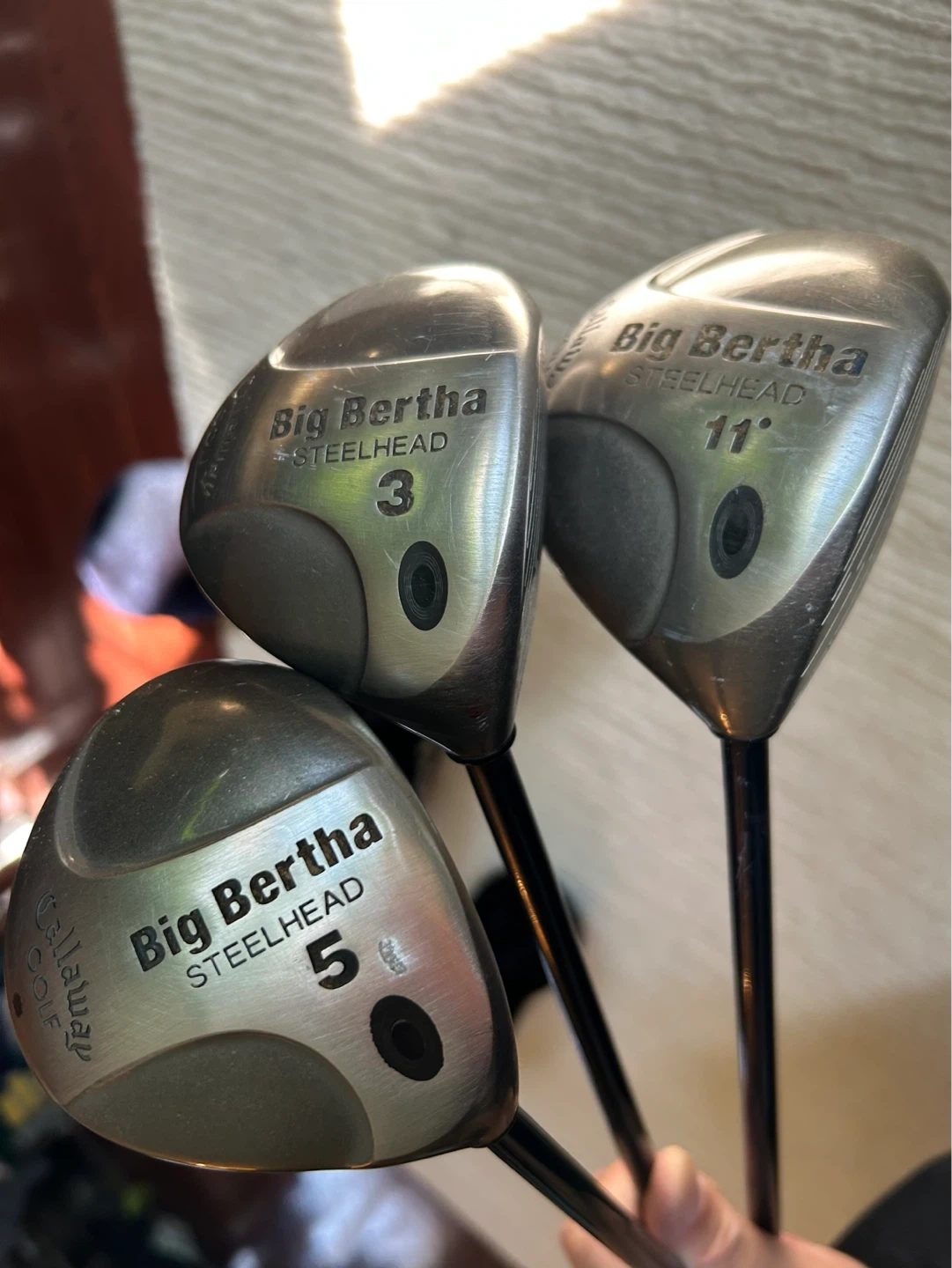 CALLAWAY BIG BERTHA STEELHEAD 1,3,5: (released circa 2002) are popular, classic fairway woods known for compact stainless steel heads, bore-thru hosels for stability, and Variable Thickness face technology for distance. They are often praised for being easy to hit from both the fairway and rough, featuring RCH 99 graphite shafts.(Regular Flex), Comes with Covers