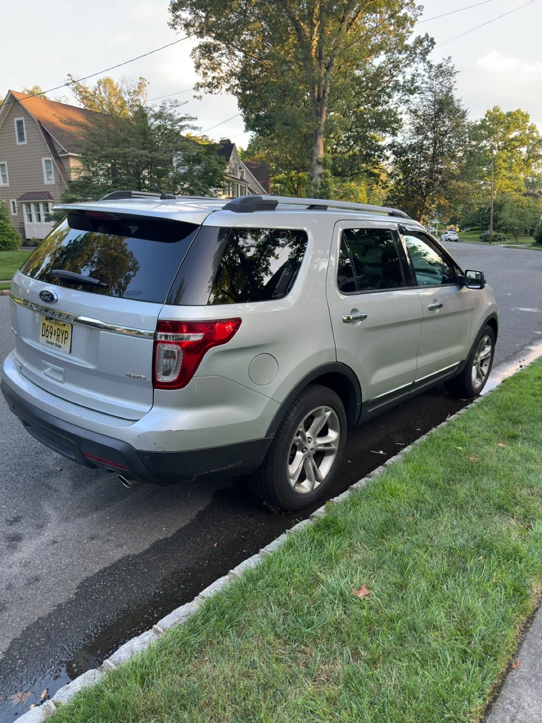 Silver 2014 Ford Explorer Limited SUV. It's a 4-door vehicle with tinted windows. Comes with original Ford floor mats. This SUV is well-suited for families needing ample passenger and cargo space.