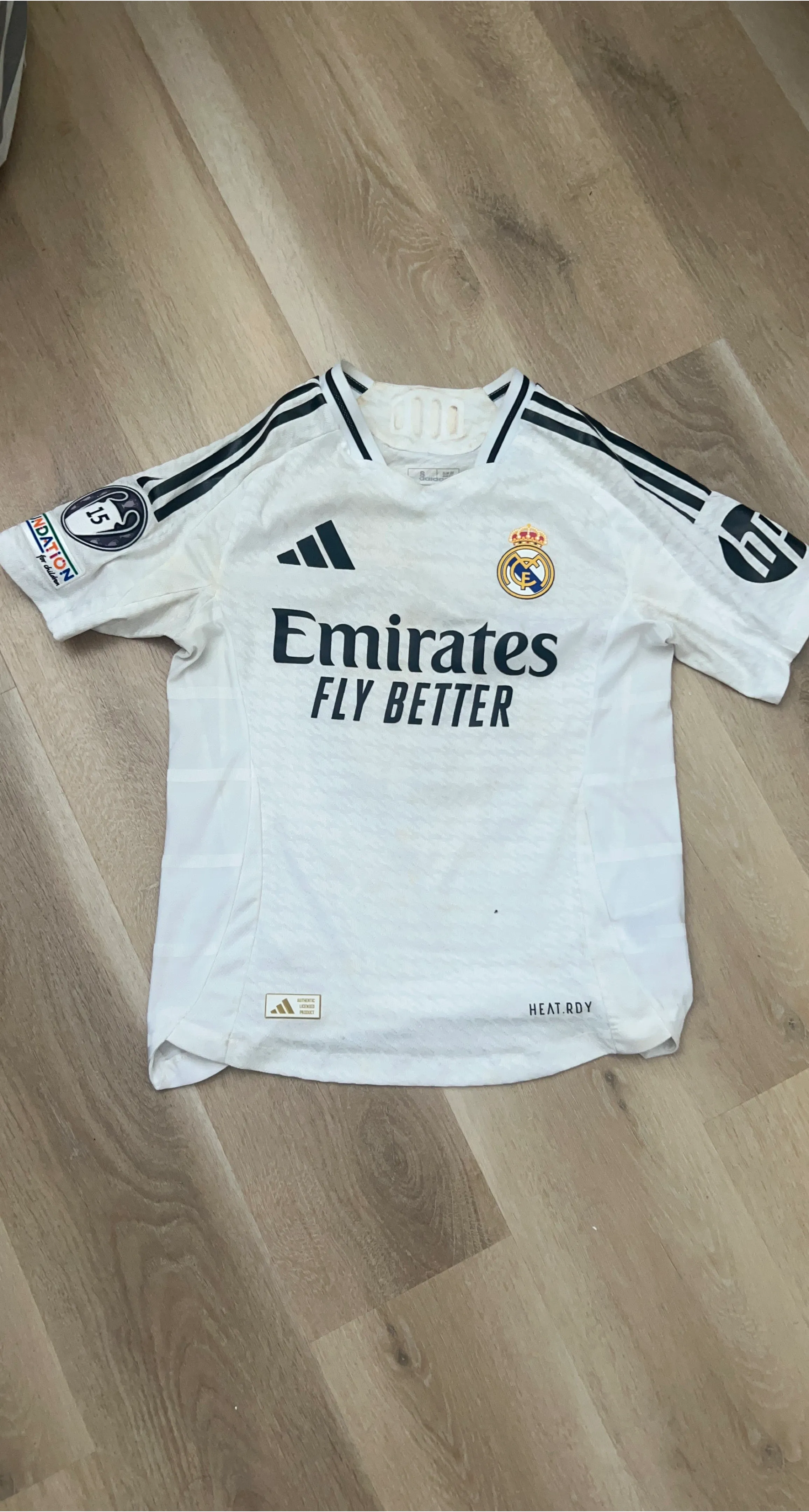 This is a Real Madrid soccer jersey featuring Modric and the number 10. It's made with HEAT.RDY technology. A great jersey for any fan!