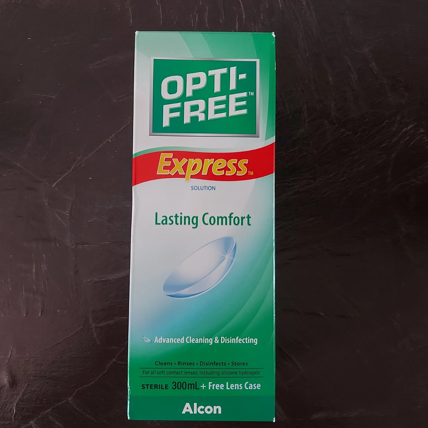 Opti-Free Express solution for all soft contact lenses, including silicone hydrogels. Cleans, rinses, disinfects and stores.
