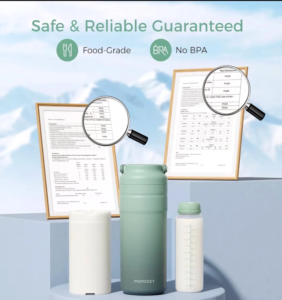 This Momcozy portable breast milk cooler keeps milk cold for over 24 hours. It's BPA-free and includes one bottle and an ice pack insert. Compact and portable for on-the-go use!