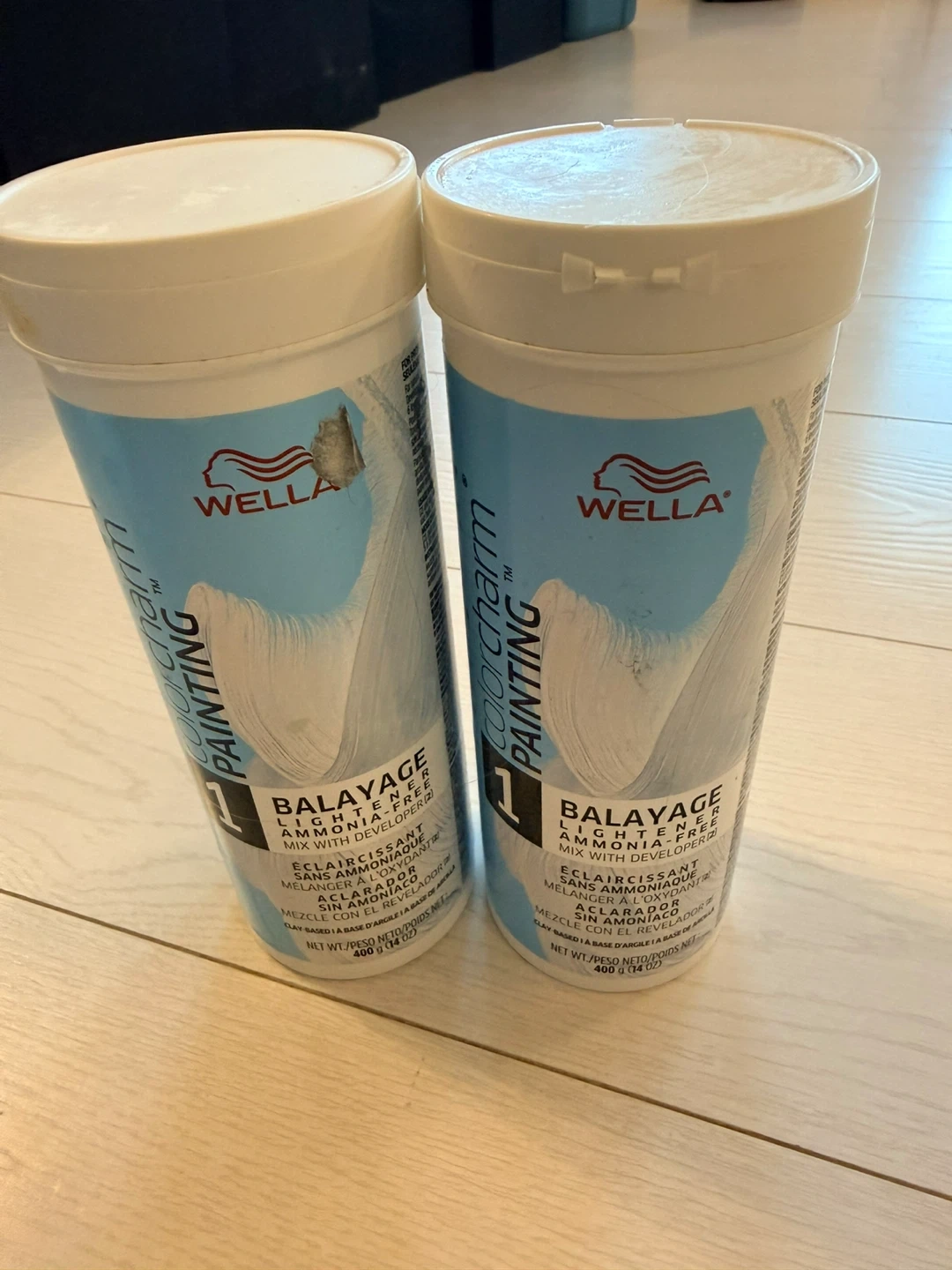 This is a Wella Colorcharm Painting Balayage lightener. It's ammonia-free and clay-based. Each container is 400g (14 oz).