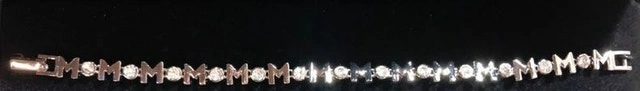 Tennis bracelet featuring round cubic zirconia stones. 8" Length. Includes bracelet and velvet case. New condition.