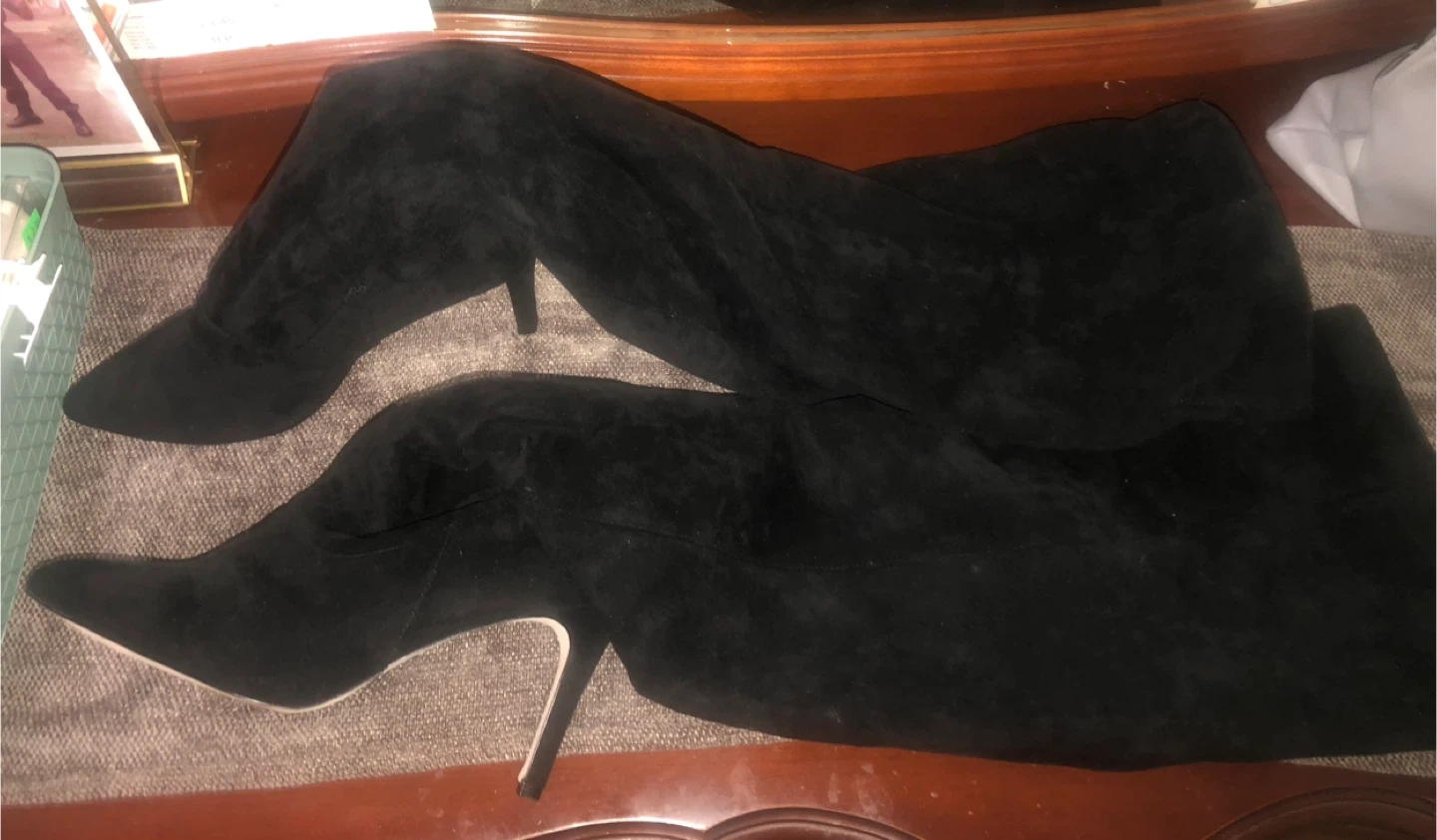Selling a pair of black thigh-high heel boots. They're in great condition and would be a stylish addition to your wardrobe!!! Fall boots, women’s shoe, thigh boots, black boots, black shoe, suede boots, women’s boots.