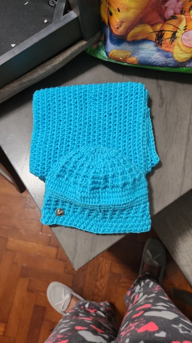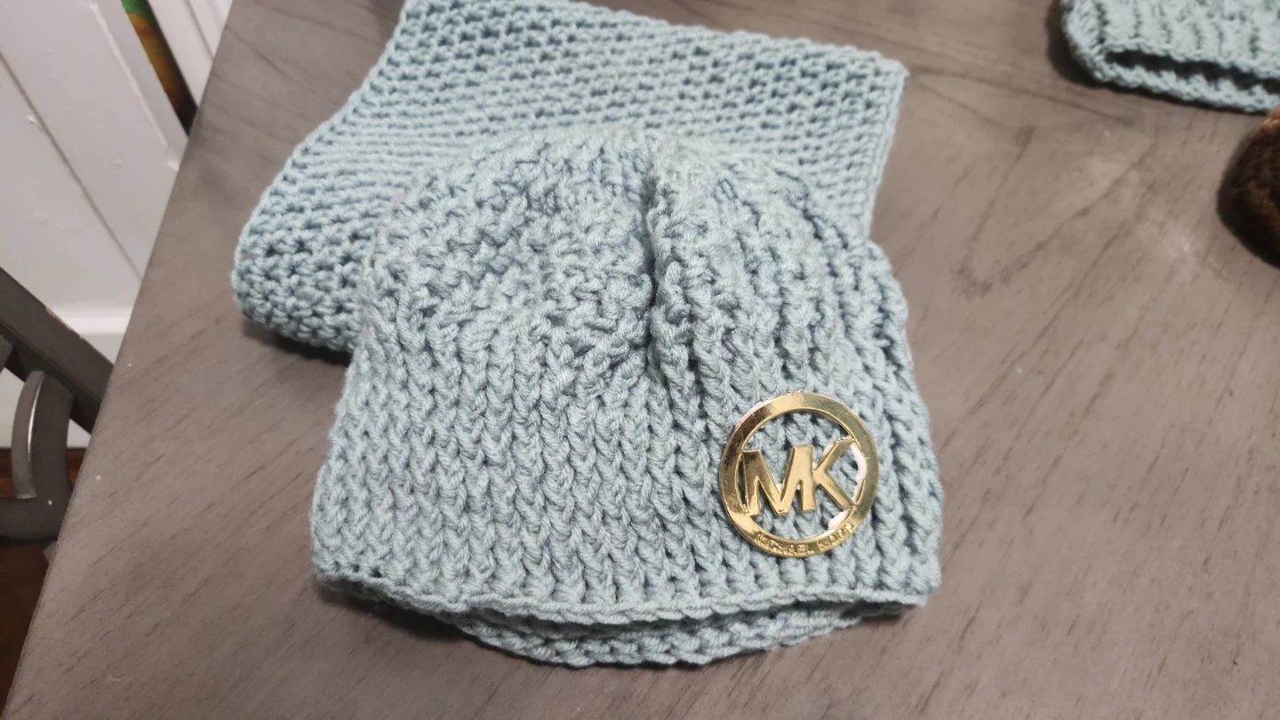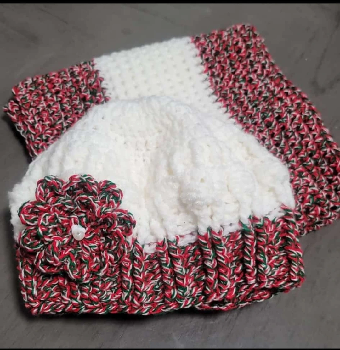 Selling these handmade crocheted hat and scarf sets! They are available in various colors including brown, red, blue, and purple. These sets are perfect for keeping you warm and stylish during the colder months. They have a unique, handcrafted look and feel!