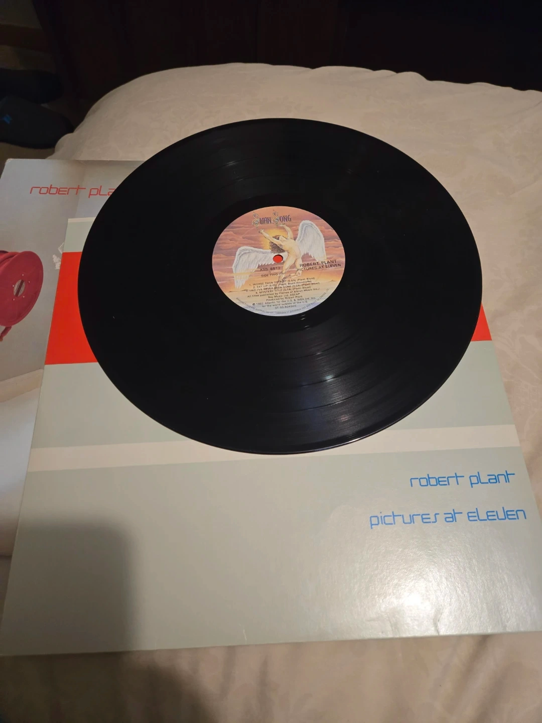 Selling a Robert Plant vinyl record, "Pictures at Eleven"! The record is in good condition and ready to be enjoyed by a new listener. A great addition to any vinyl collection! Some damage to jacket not bad though.