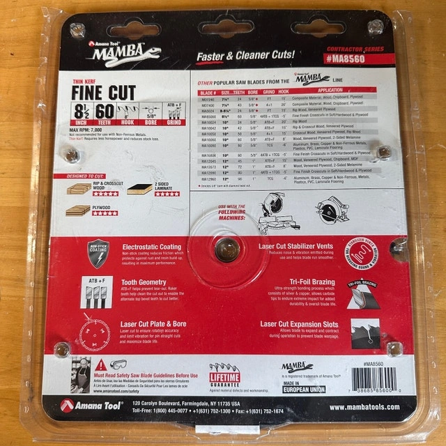Amana Tool Mamba MA8560 8-1/2" Fine-Cut 60T Circular Saw Blade — Brand New (Open Package).