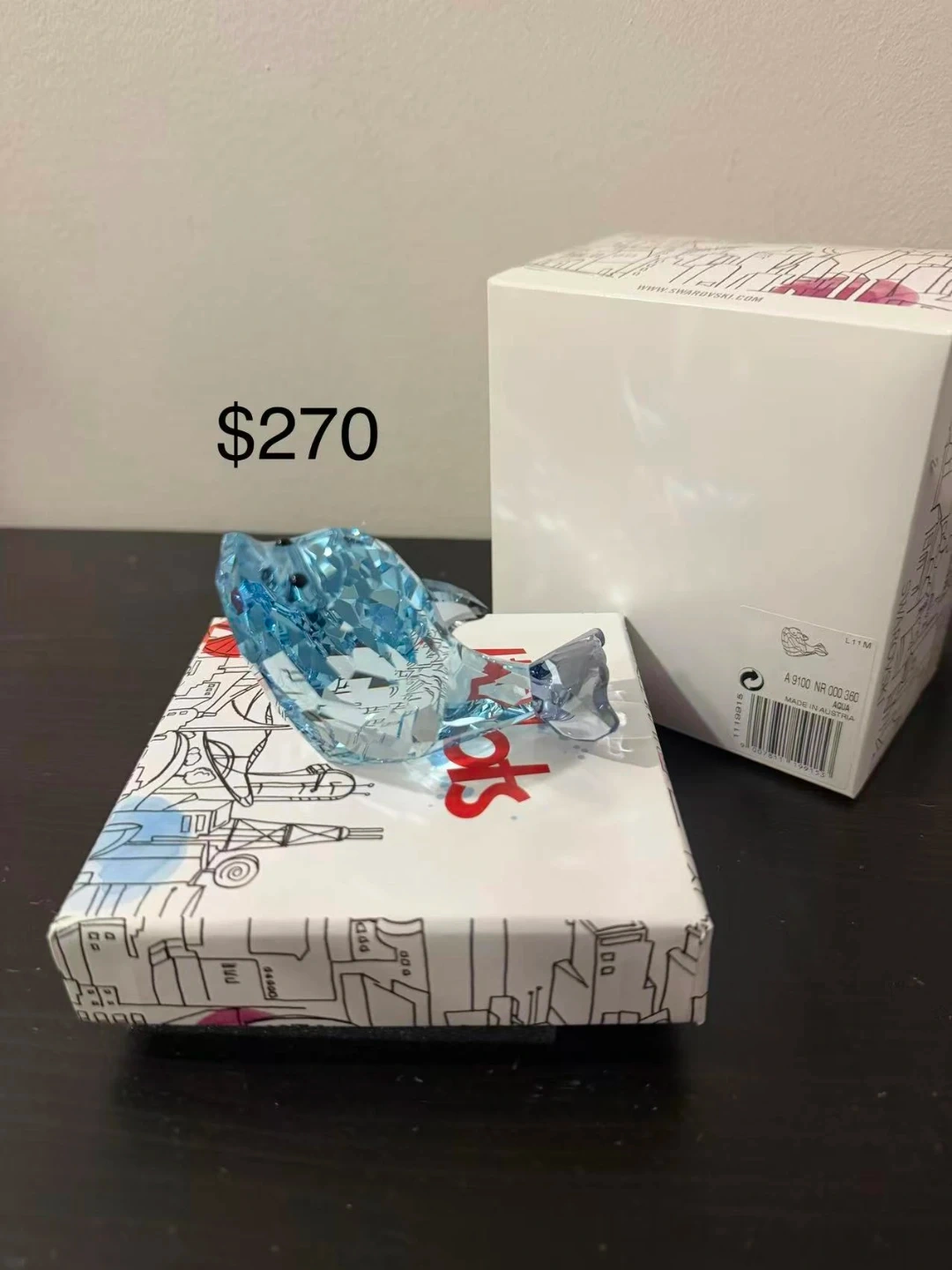 Beautiful Swarovski crystal figurines including a seahorse, a blue bird, and two owls. Made in Austria, these decorative pieces add sparkle to any space. Includes original boxes for some items.