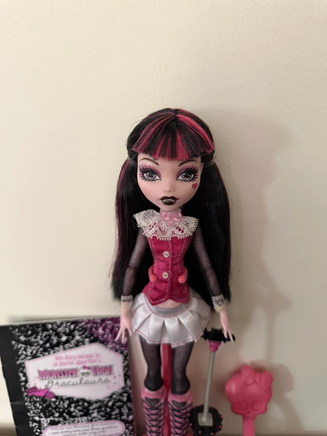 Original owner, not creeproduction, 2010 Draculaura with gold elastics. No loose hips or joints, was displayed only. Comes with everything shown. From a smoke free pet friendly home. No shipping. Pickup in Alliston. $250